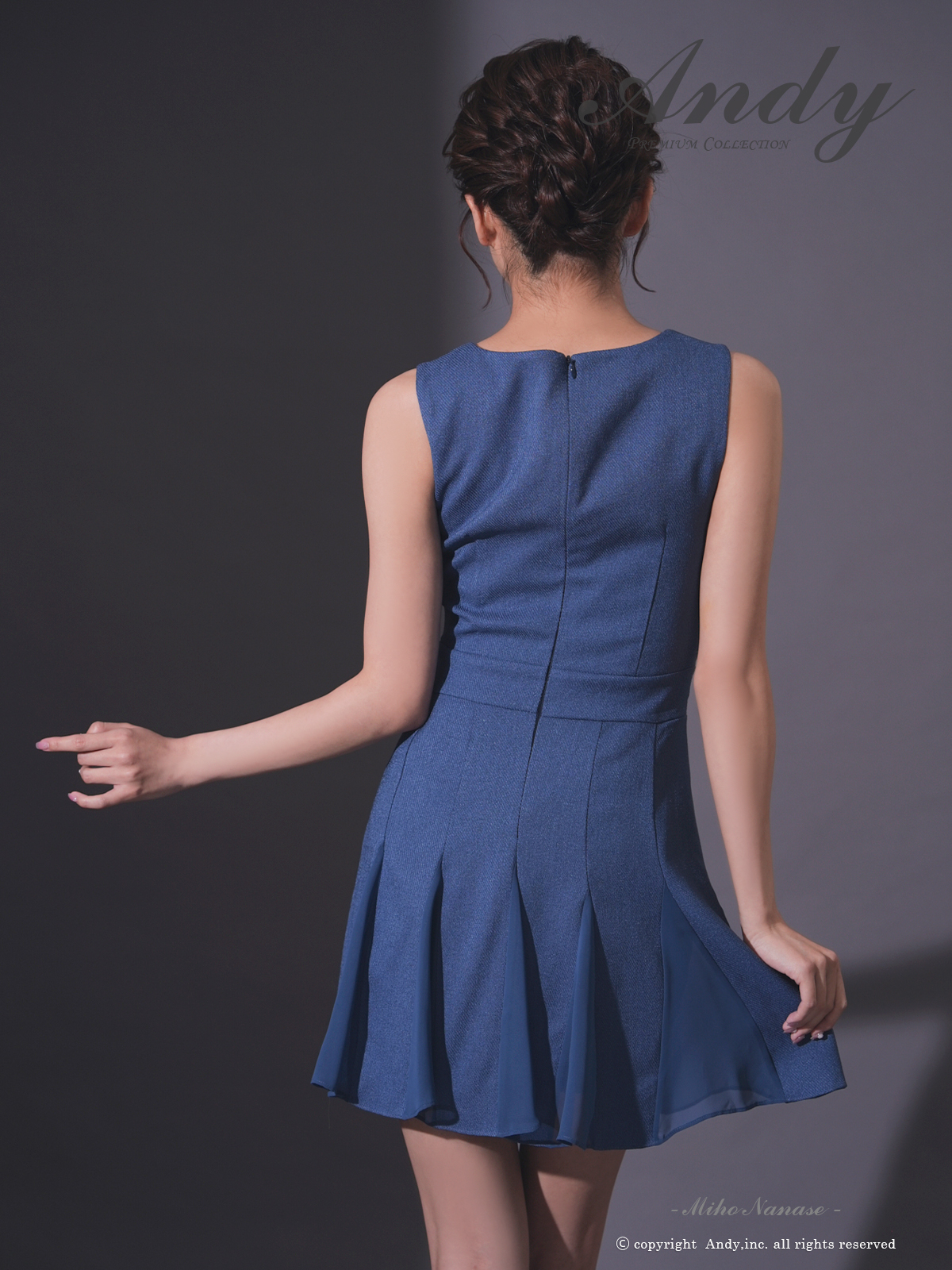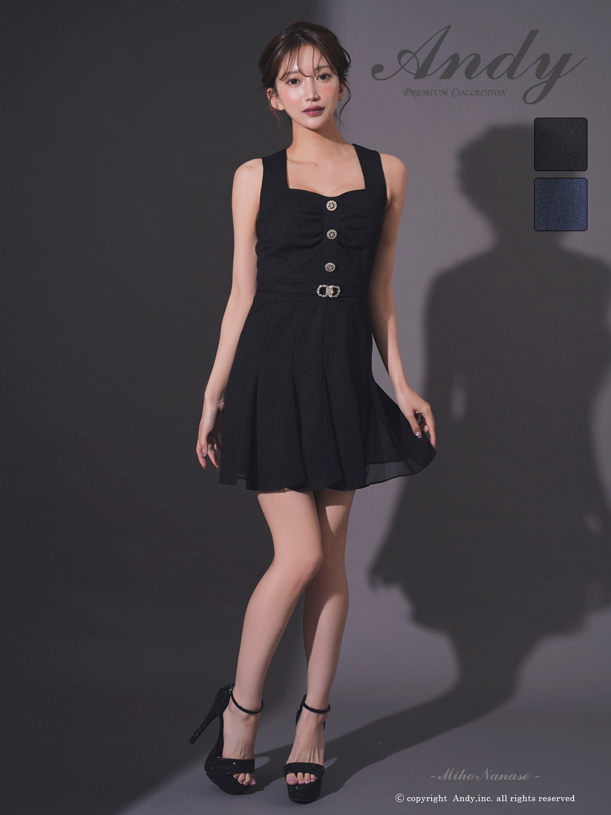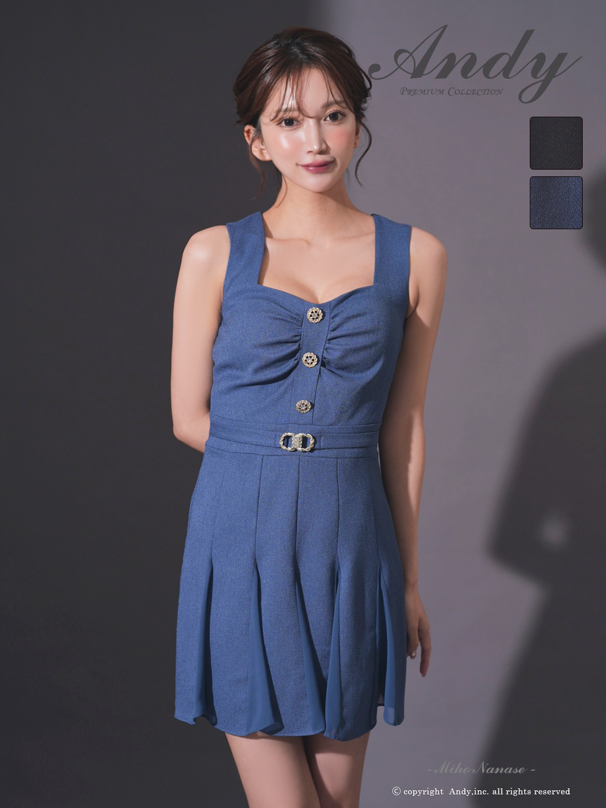 XSサイズあり【ANDY/アンディ】シンプル/ ノースリーブ/ ビジューボタン/ ベルト/ 裾シフォン/ フレア/ ミニドレス/ キャバドレス[OF05] [OK2972-NVBL-2508]