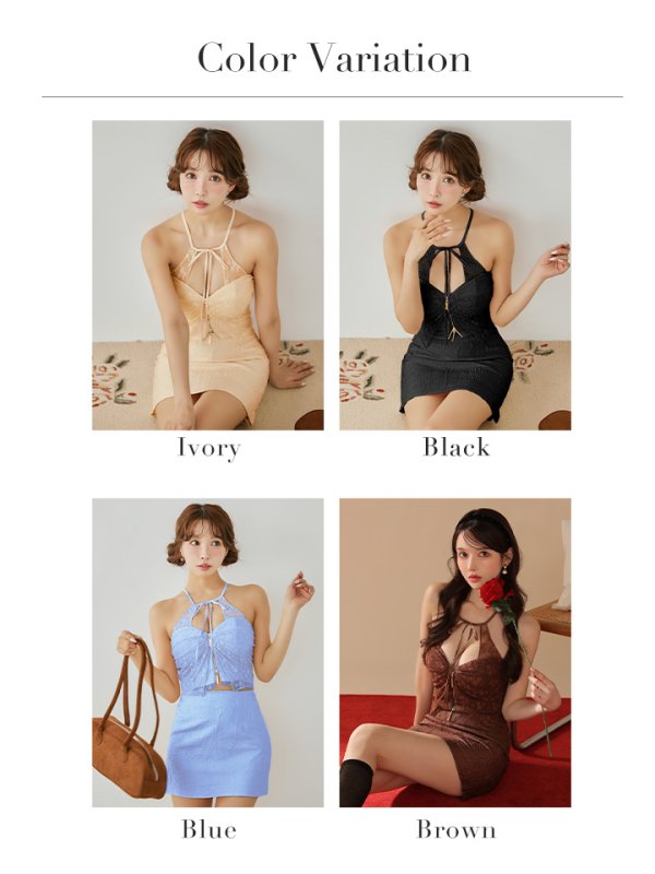 XSサイズあり【ROBE de FLEURS/ローブドフルール】ジャガード/ ホルター/ リボン/ セットアップ/ ミニドレス/ キャバドレス[OF08] [FM4201-B-S250829]