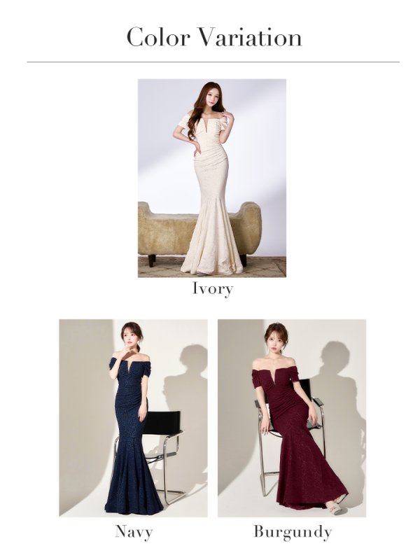 Lサイズあり【UNA VALERIE / ウナヴァレリェ】 花柄/ オフショルダー/ バストシアー/ ギャザー/ タック/ マーメイド/ ロングドレス long[OF05] [V60210L-NV-S2508]