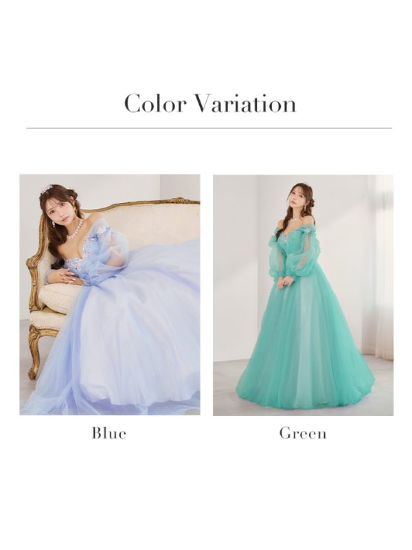 チュールが織りなすグラデーションに見惚れるフレアロングドレス♡