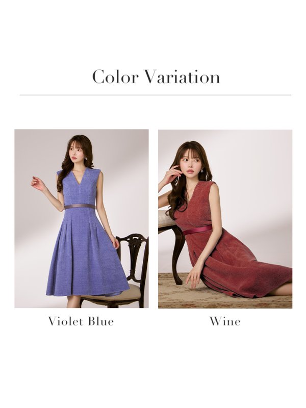【VELIQUE/ヴェリーク】ベロア/ Vネック/ノースリーブ/ サテンベルト/ Aライン/ フレア/ ワンピース/ ミニドレス/ キャバドレス【HC02】 [BYRS-209-Wine-S2508]