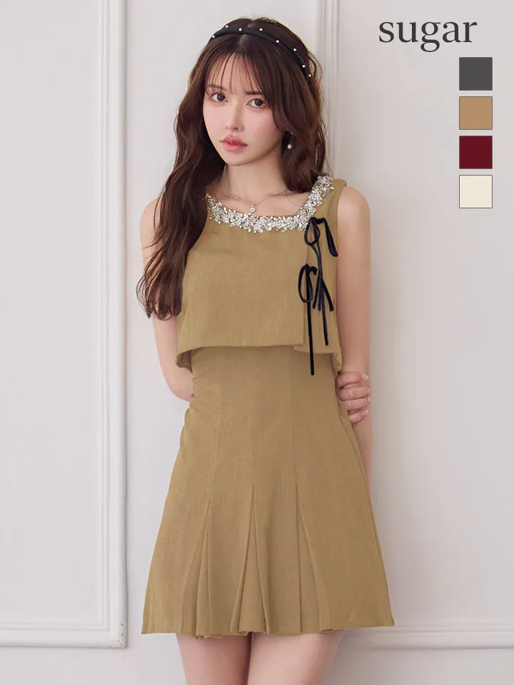 【ANGEL R/エンジェルアール】ノースリーブ/ リボン/ ビジュー/ 2way/ フレア/ ミニドレス/ キャバドレス[OF2] [AR25338-IV-S250902]