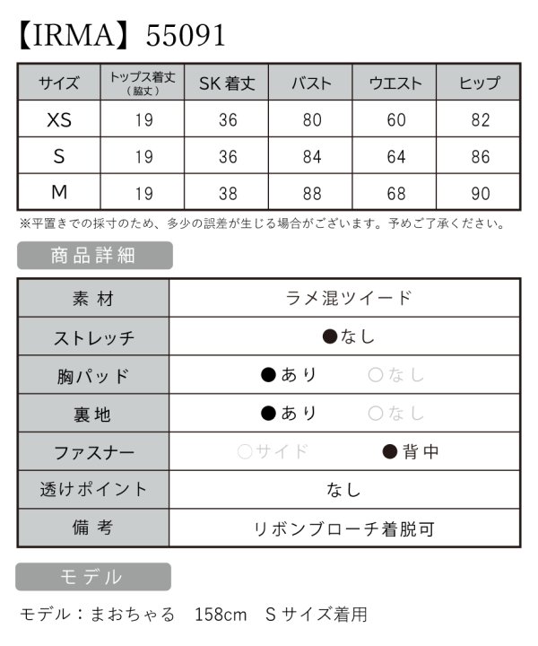 XSサイズあり【IRMA/イルマ】ミックスツイード/ フロントジップ/ リボンブローチ/ キャミソール/ プリーツ/ フレア/ セットアップ/ ミニドレス/ キャバドレス[OF2A] [55091-IR-W-S250902]