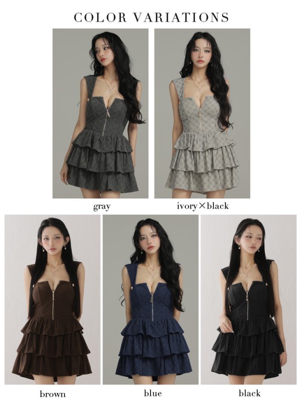 #キャバクラ #キャバ嬢 #キャバクラドレス#チェック柄 #フロントジップ #ワンカラー #フレア #谷間魅せ