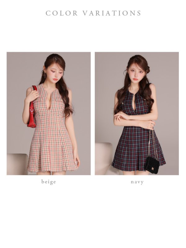 XSサイズあり【DEA./ディア】チェック/ ノースリーブ/ バストカット/ プリーツ/ ミニドレス/ キャバドレス[OF08] [DE4209-NV-S250904]