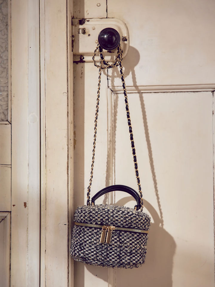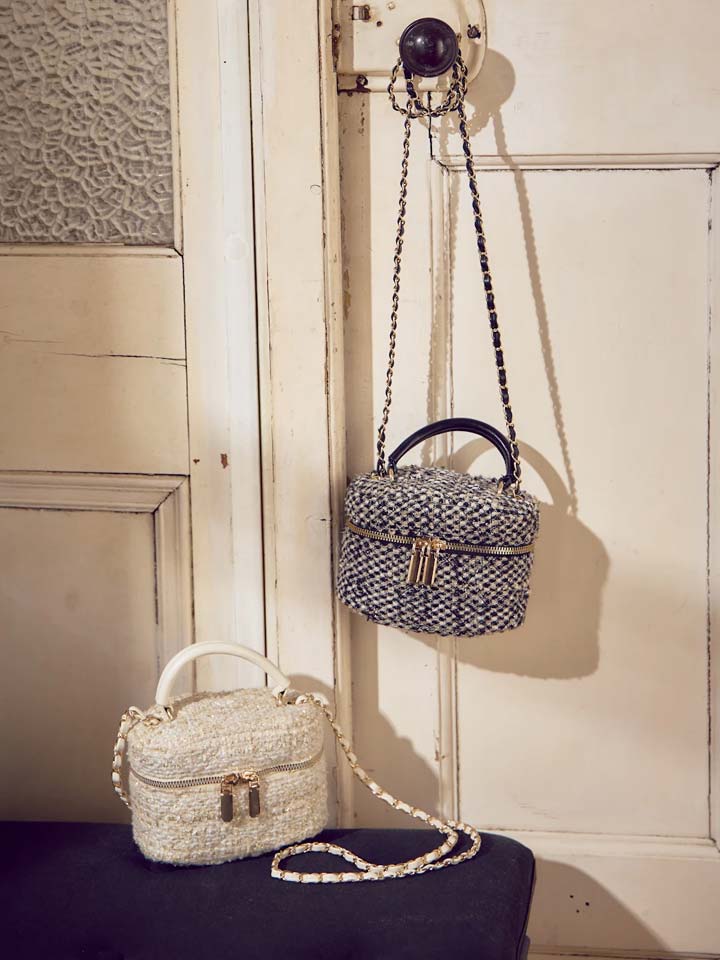ツイードがおしゃれなバニティバッグ。