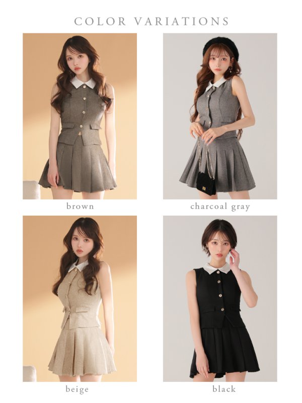 XSサイズあり【DEA./ディア】2way/ 襟付き/ クラシカル/ ベスト/ セットアップ/ フレア/ミニドレス/ キャバドレス[OF08] [DE4306-BR-2509]