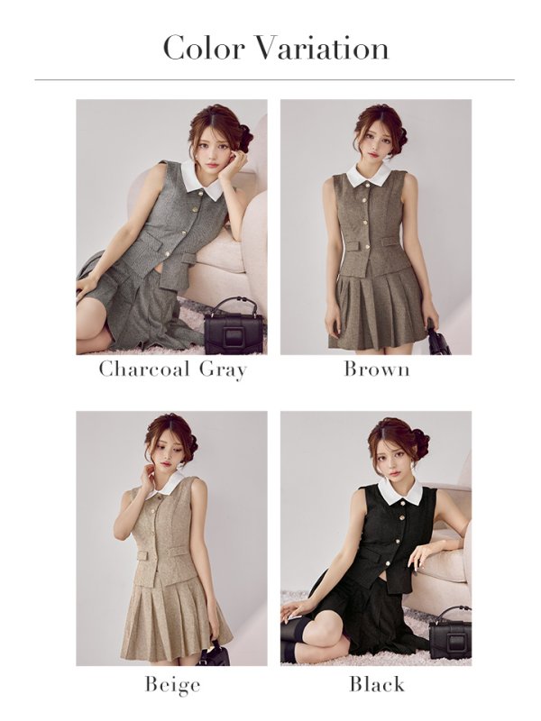 XSサイズあり【DEA./ディア】2way/ 襟付き/ クラシカル/ ベスト/ セットアップ/ フレア/ミニドレス/ キャバドレス[OF08] [DE4306-charcoalGY-S250908]