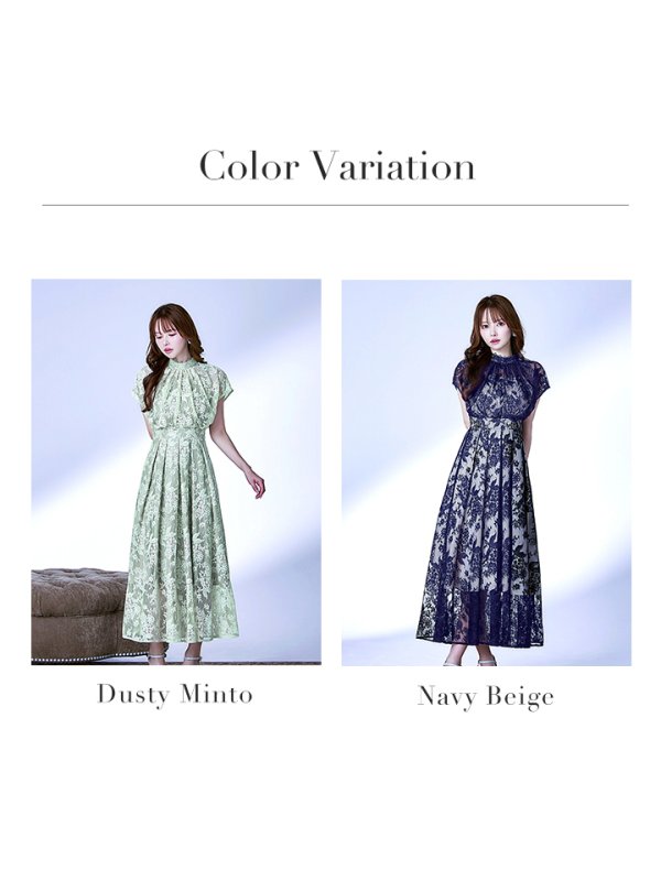 透け感のあるフラワーレースにハイネックが大人クラシカルな雰囲気のミモレ丈ワンピースドレス♡