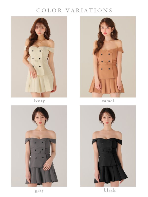 XSサイズあり【DEA./ディア】オフショル/ ダブルボタン/ セットアップ/ フレア/ ミニドレス/ キャバドレス[OF08] [DE4315-IV-S250909]