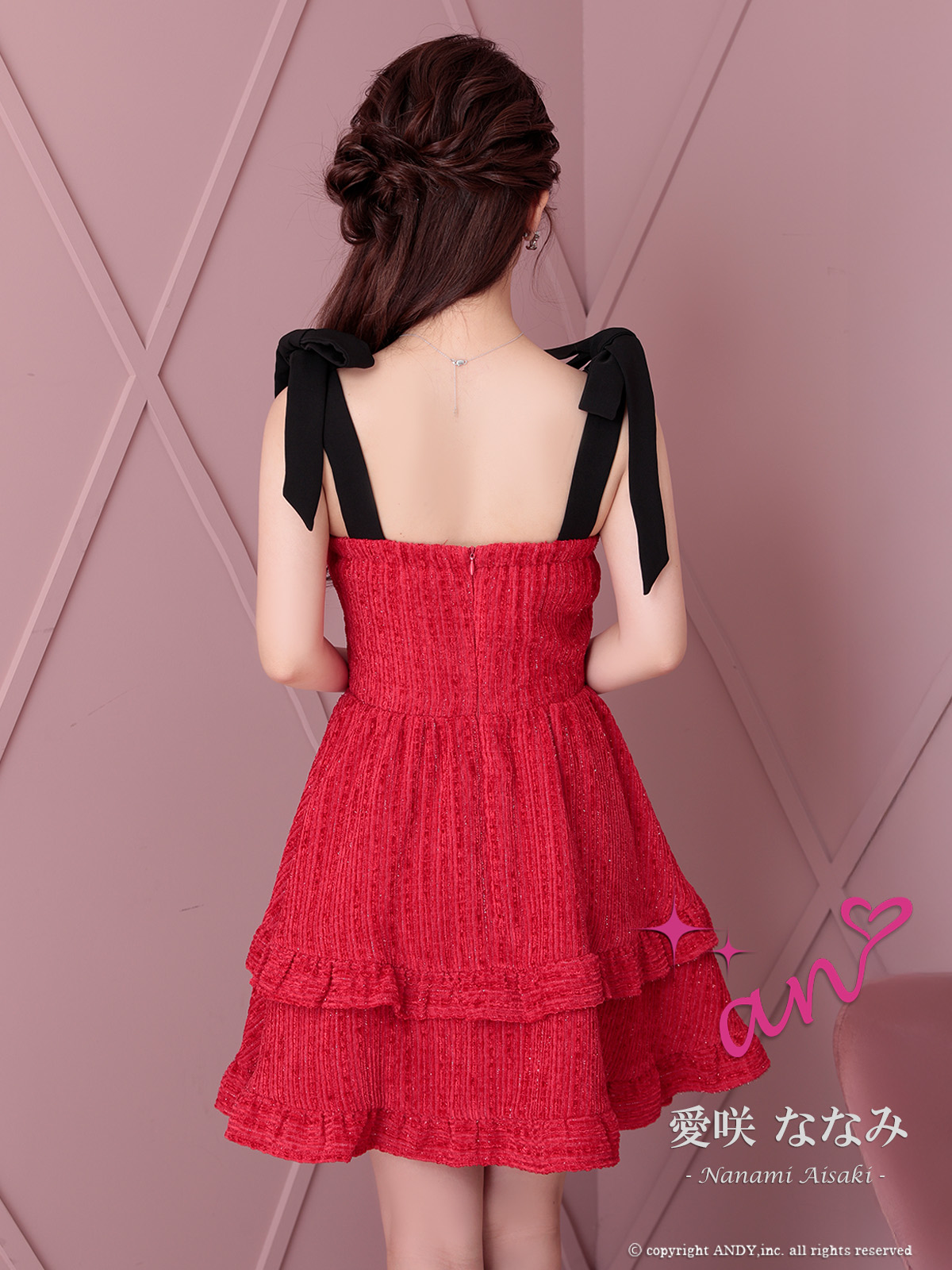 【an/アン】フロントビジューとショルダーリボンが華やかなフレアミニドレス♡