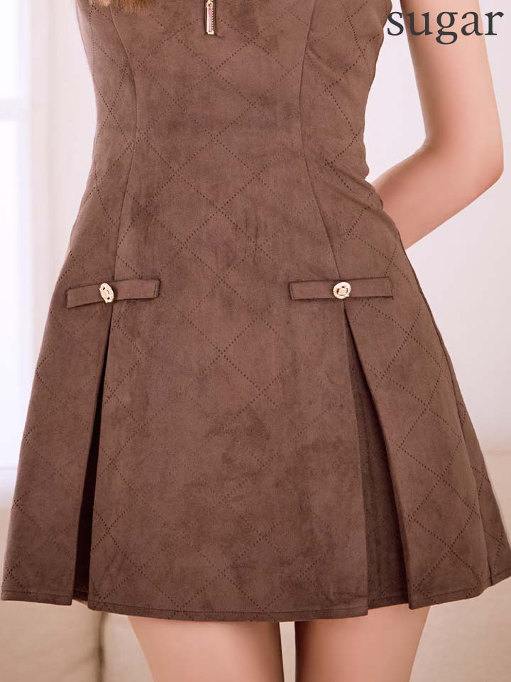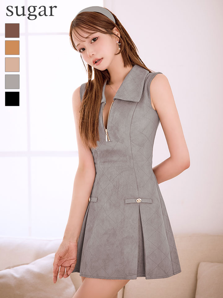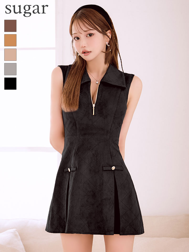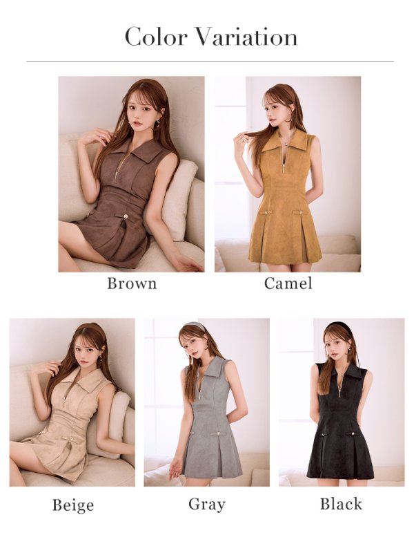 XSサイズあり【DEA./ディア】スエード/ ジップ/ カラー/ フレア/ ワンピース/ ミニドレス/ キャバドレス[OF08] [DE3458-BR-S250912]