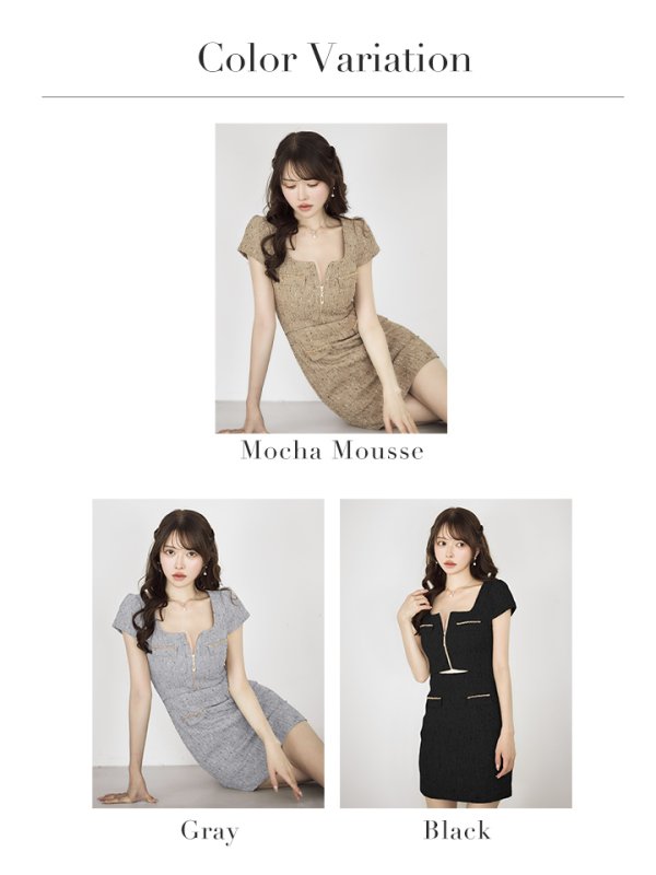 XSサイズあり【IRMA/イルマ】ラメ/ ツイード/ バストジップ/ スクエアネック/ 半袖/ 袖あり/ ウエストカットアウト/ タイト/ ミニドレス/ キャバドレス[OF2A] [55094-IR-MOCMous-S250912]