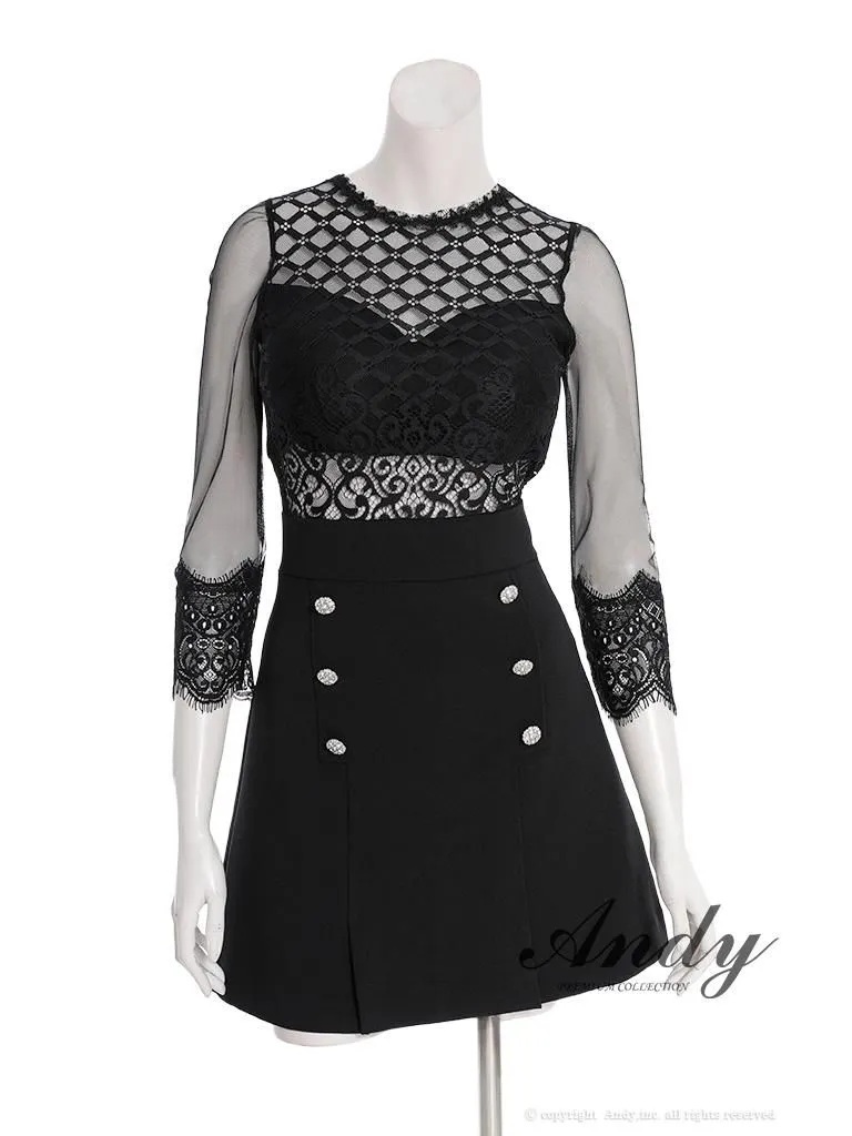 【ANDY/アンディ】シアー/ レース/ 切替/ タイトスリーブ/ 五分袖/ 袖あり/ ダブルボタン/ ボックスプリーツ/ フレア/ ワンピース/ ミニドレス/ キャバドレス[OF05] [ON2991-BxDKP-2509]