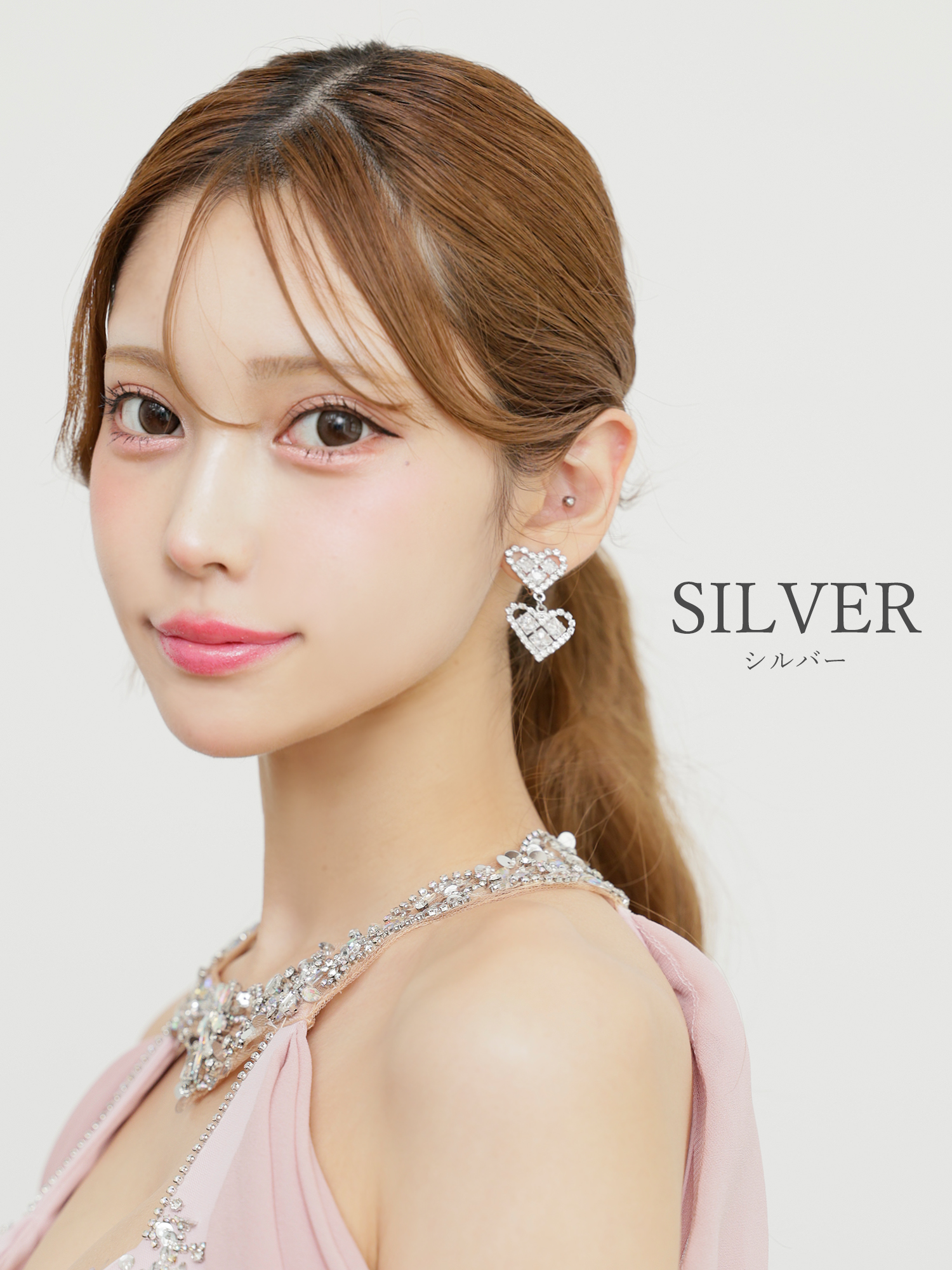 煌めくストーンが光を集め、フェミニンな魅力を引き立てます。