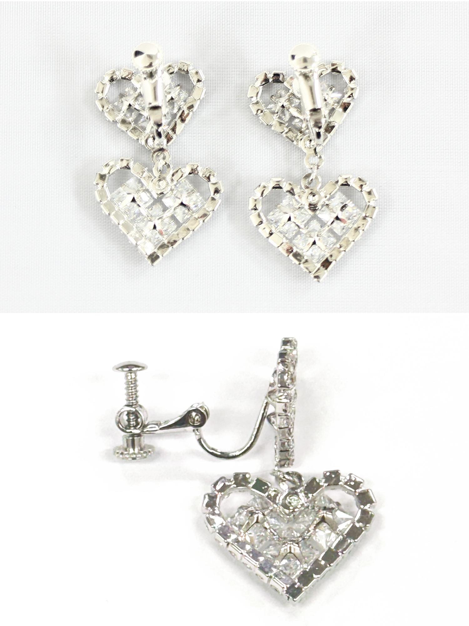 ダブルハートが揺れるデザインで、愛らしさと華やかさを同時に演出するイヤリング