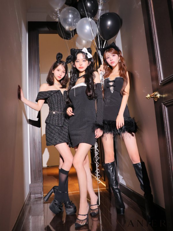 XSサイズあり【ANIER./アニエル】【ROBE de FLEURS/ローブドフルール】Sparkly ribbons voluminous fur cat ears halloween dress/ キャット/ コスプレ/ ミニドレス/ キャバドレス[OF02] [ANIER4053-B-2509]