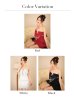 胸元のフリルには繊細なビジューをあしらい、動くたびに上品な輝きを放ちます。