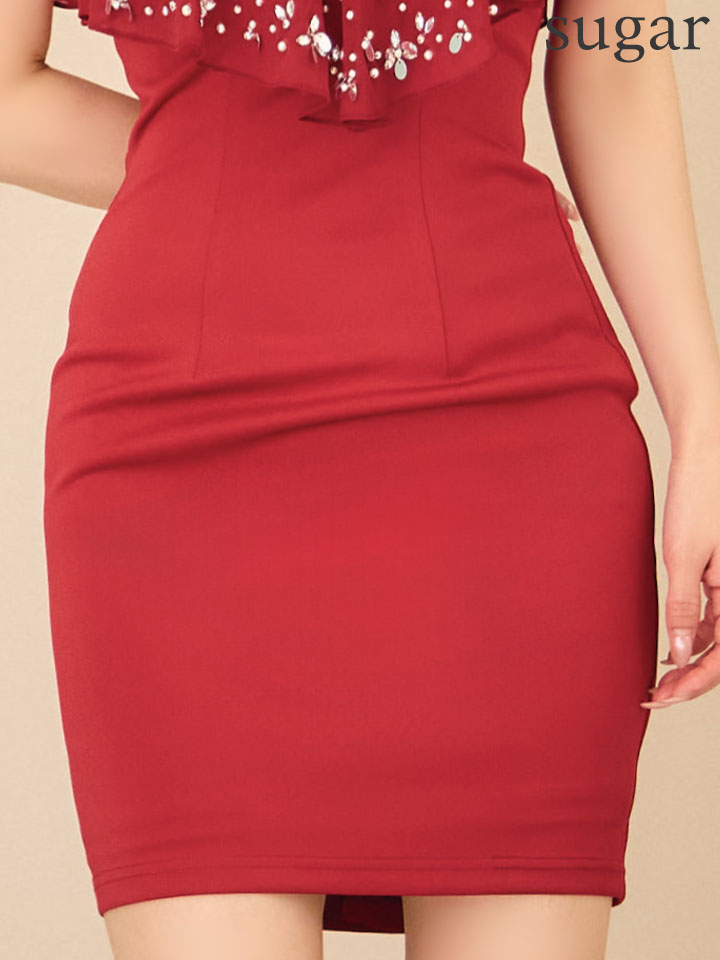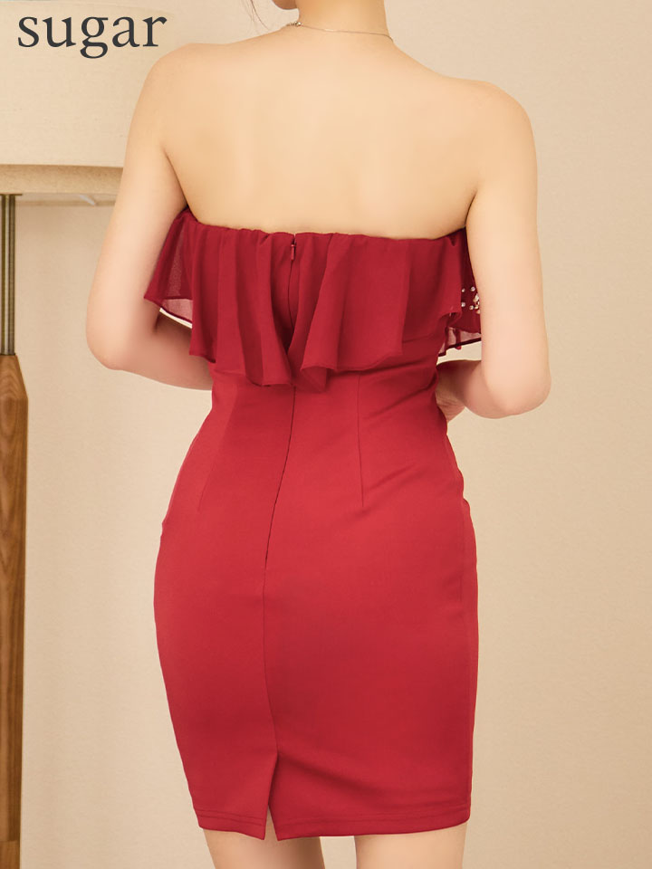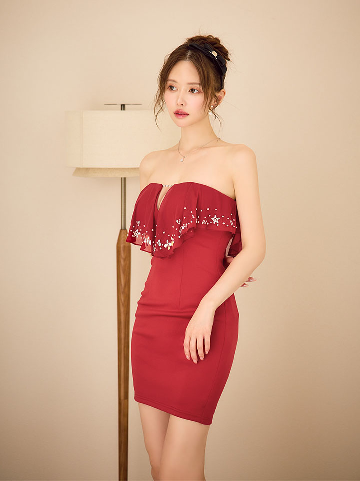 【ANGEL R/エンジェルアール】ベアトップ/ バストフリル/ Vカット/ ビジュー/ タイト/ ミニドレス/ キャバドレス[OF2] [AR25243-R-S250917]