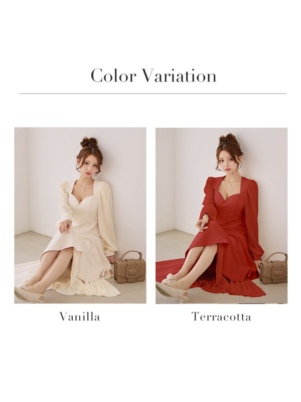 気になる二の腕をカバーしてくれるロングパフスリーブも嬉しい1着です。