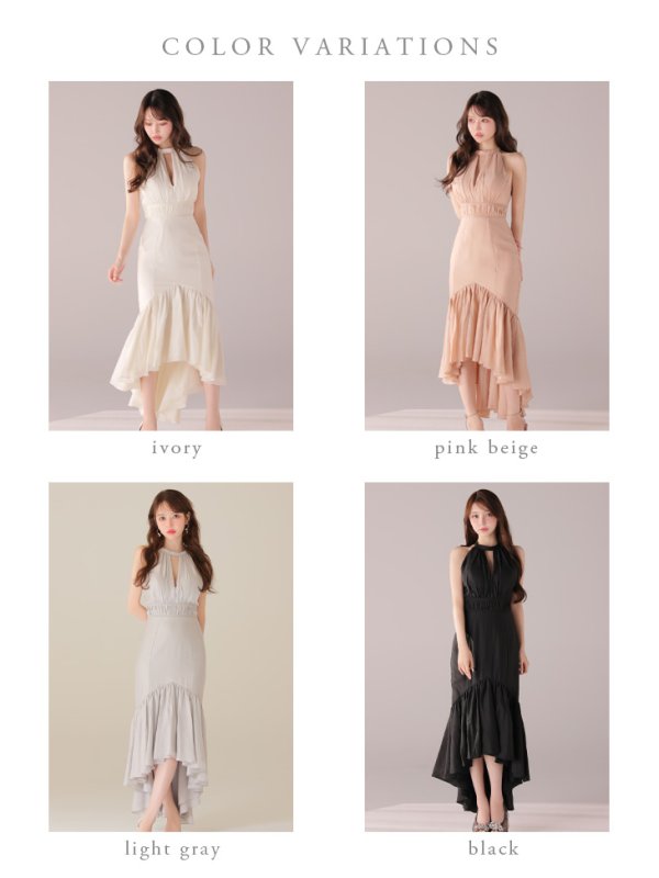 Lサイズあり【DEA./ディア】オーガンジー/ サテン/ ホルター/ ロング/ ワンピース/ ミモレ丈/ ミディアムドレス/ キャバドレス long[OF08] [DE4611-PBE-2509]