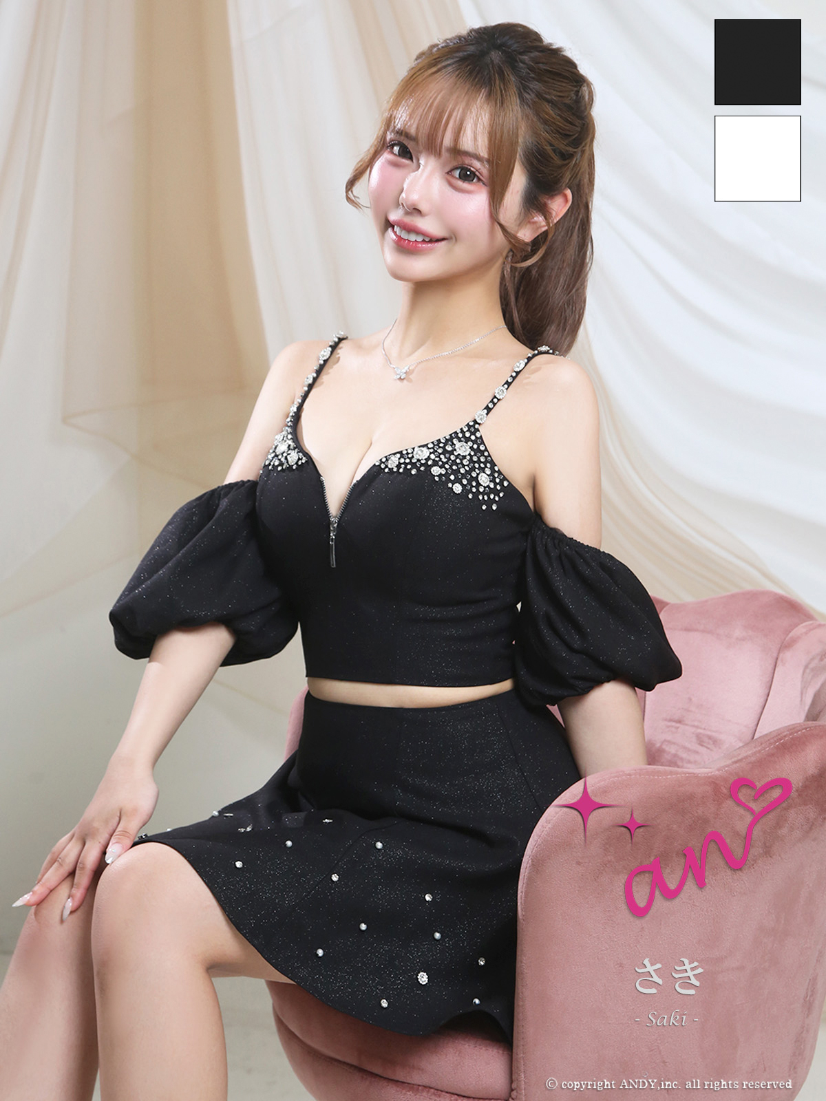 XSサイズあり【an/アン】ビジュー/ キャミソール/ ラメ/ パフスリーブ/ バストジップ/ フレア/ セットアップ/ ミニドレス/ キャバドレス[OF05] [AOC3987-W-2509]