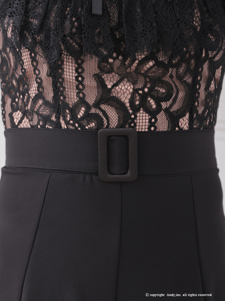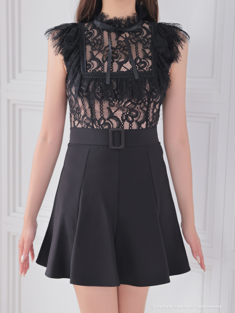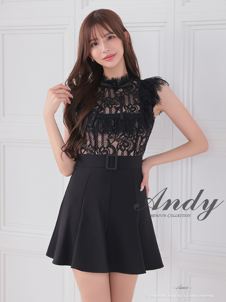 XSサイズあり【ANDY/アンディ】プチハイネック/ シースルー/ リボン/ レース/ ショルダーフリル/ ノースリーブ/ フレア/ ミニドレス/ キャバドレス[OF05] [ON2838-BBE-2509]