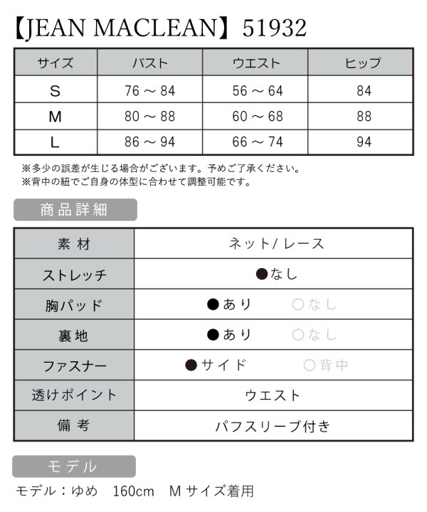 ※商品によって、ホック部分が金具に引っかけるタイプとドレス本体に引っかけるタイプがございます。【JEAN MACLEAN/ジャンマクレーン】