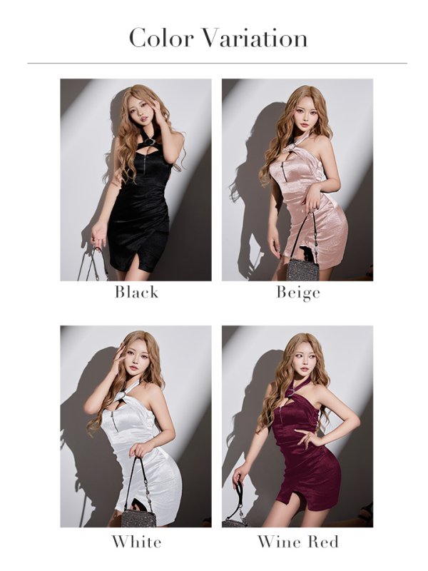 XSサイズあり【ANDY/アンディ】クロスホルター/ ストレッチ/ サテン/ ビジューバックル/ バストジップ/ タイト/ ミニドレス/ キャバドレス[OF05] [ON2985-W-S250924]