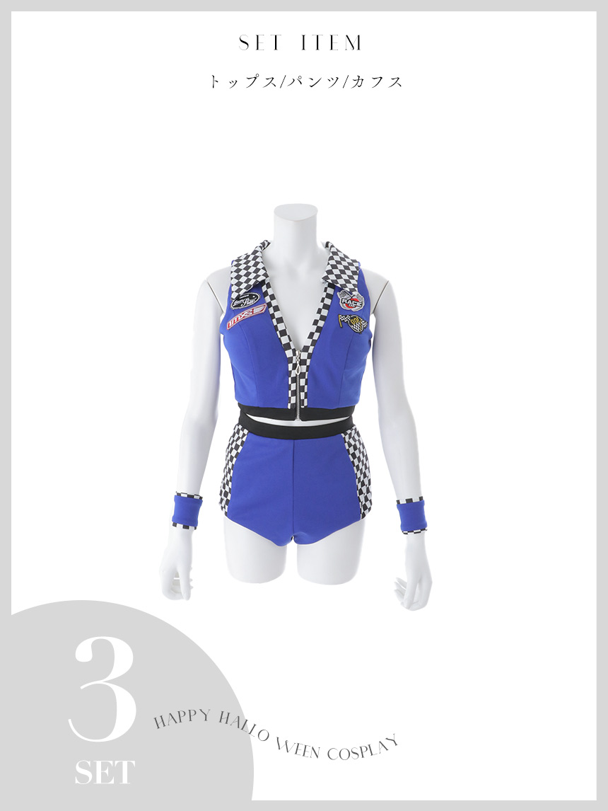 【予約 / 10月上旬発送予定】【送料無料!】【ハロウィン】レースクイーンセットアップ【コスプレ3点セット】【XS-Lサイズ/2カラー】[OF04] [HW-225-SB-dzk-BL-25RR]