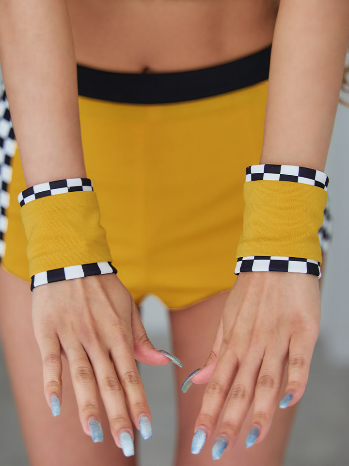 イエロー 黄色 ブルー 青 ミニ タイト 胸盛り セットアップ