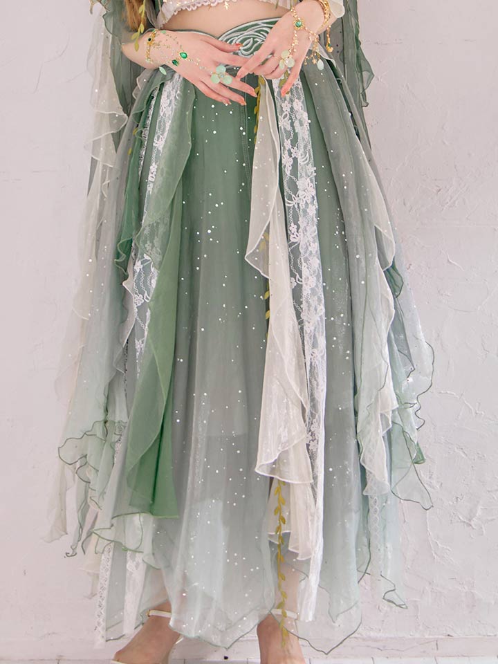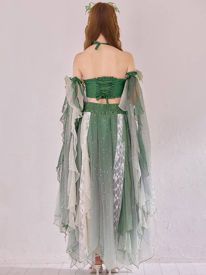 グリーン 緑 スカート ロング 胸盛り セットアップ