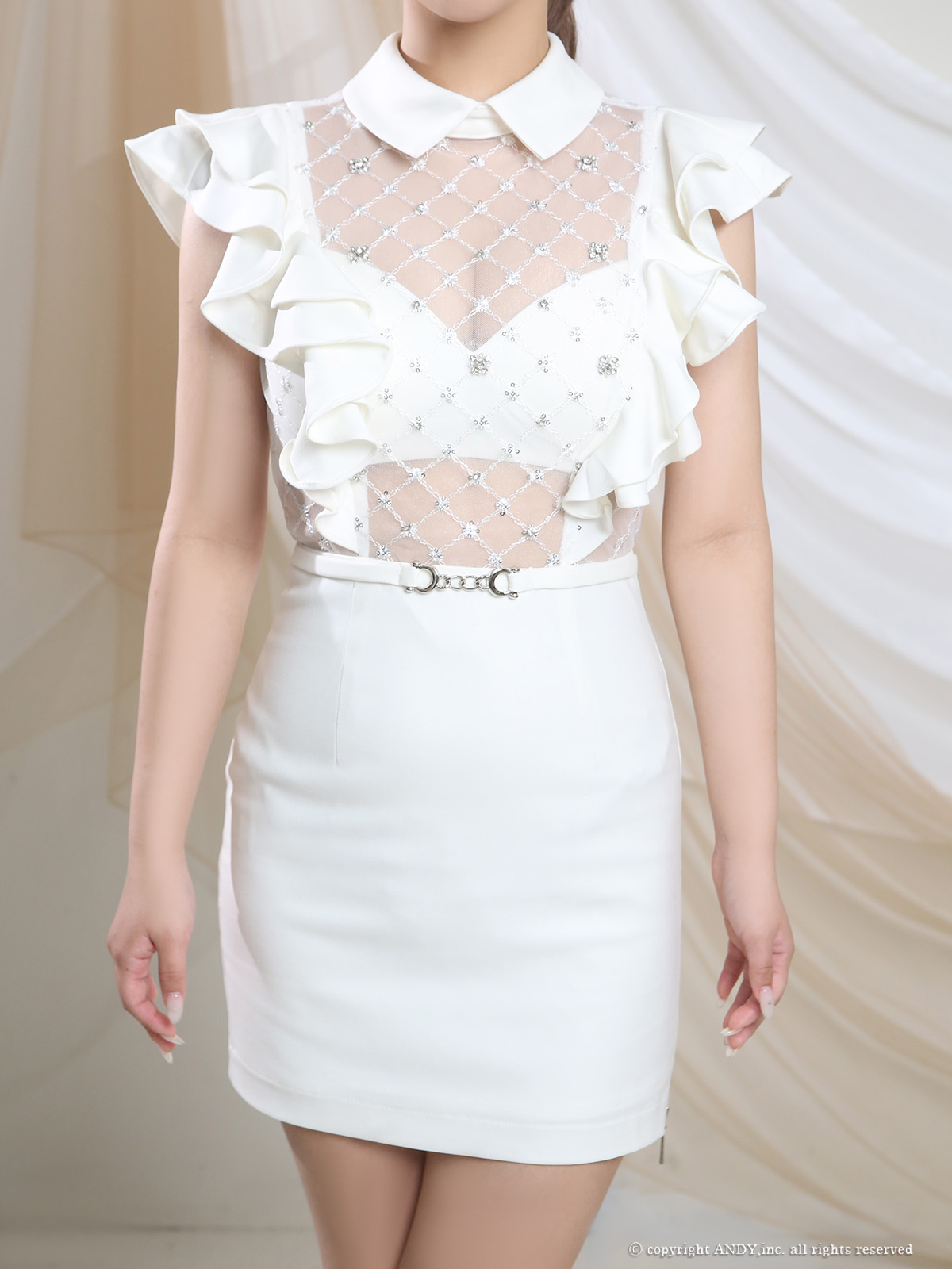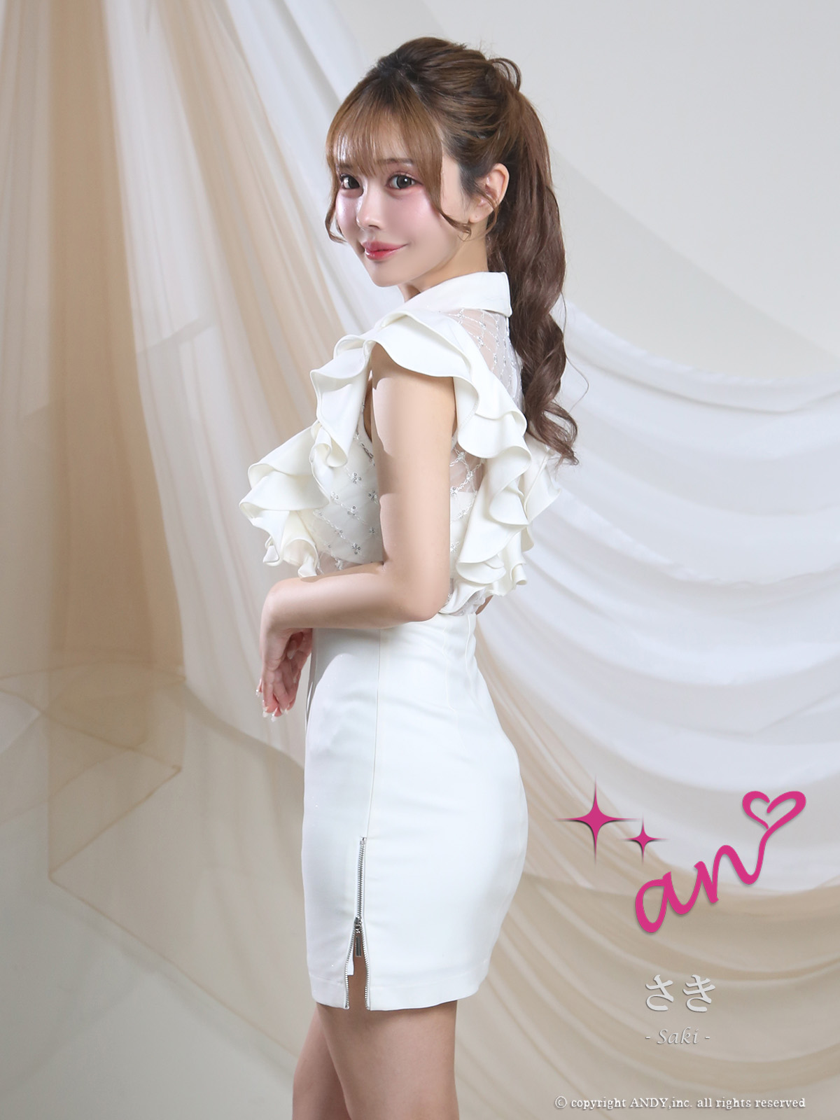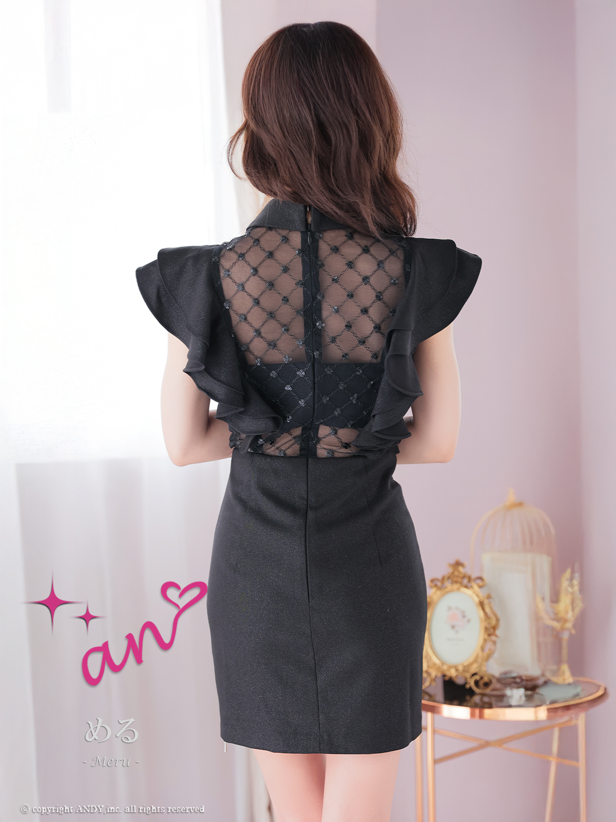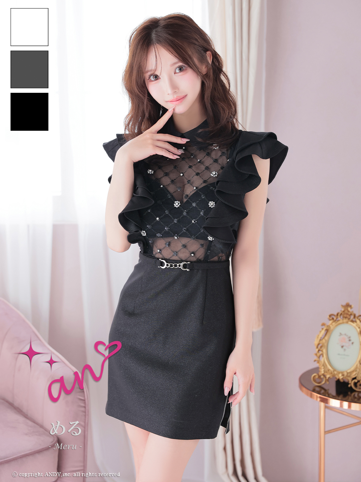 XSサイズあり【an/アン】襟付き/ フリル/ ビジュー/ シアー/ 切替/ タイト/ ミニドレス/ キャバドレス[OF05] [AOC3998-B-2509]