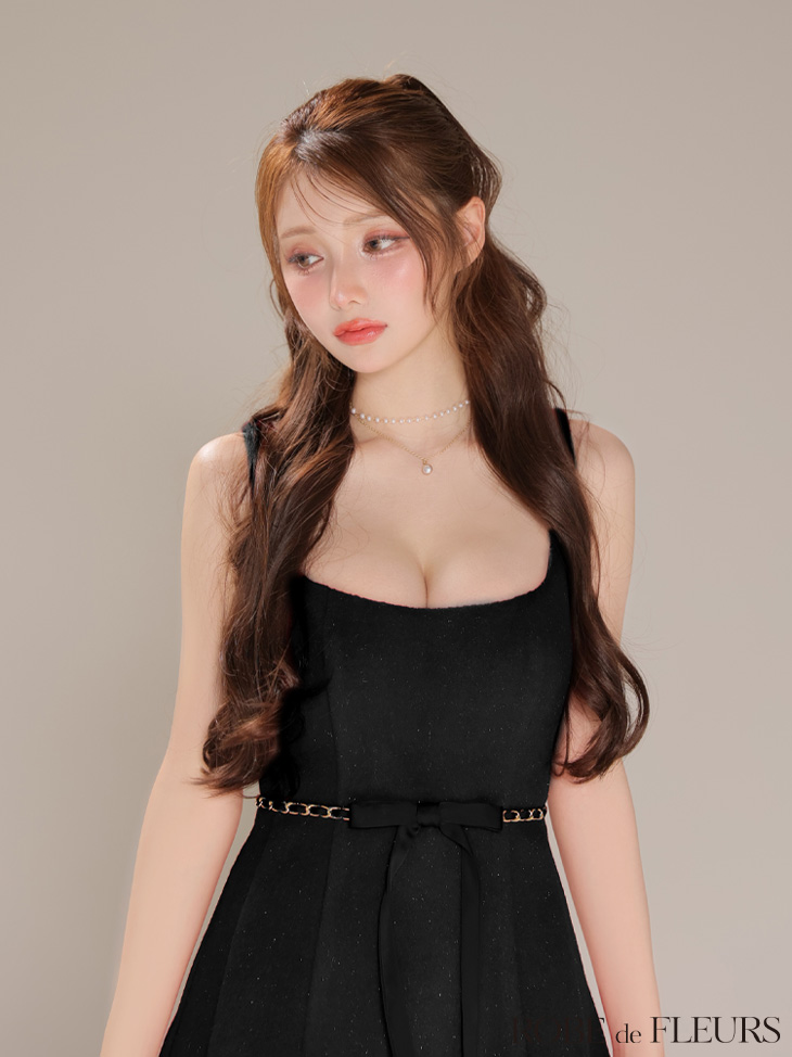 【予約商品/10月上旬発送予定】XSサイズあり【ROBE de FLEURS/ローブドフルール】ウエストリボン/ ラメ入りメルトン/ フレア/ ミニドレス/ キャバドレス[OF08] [FM3474-GY-2509]
