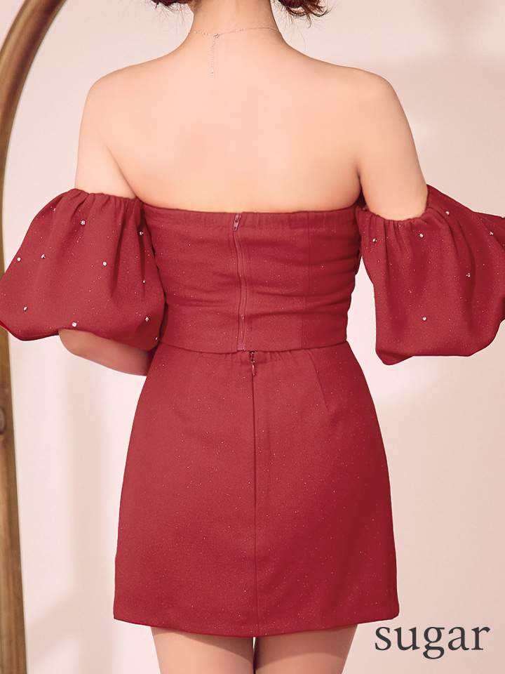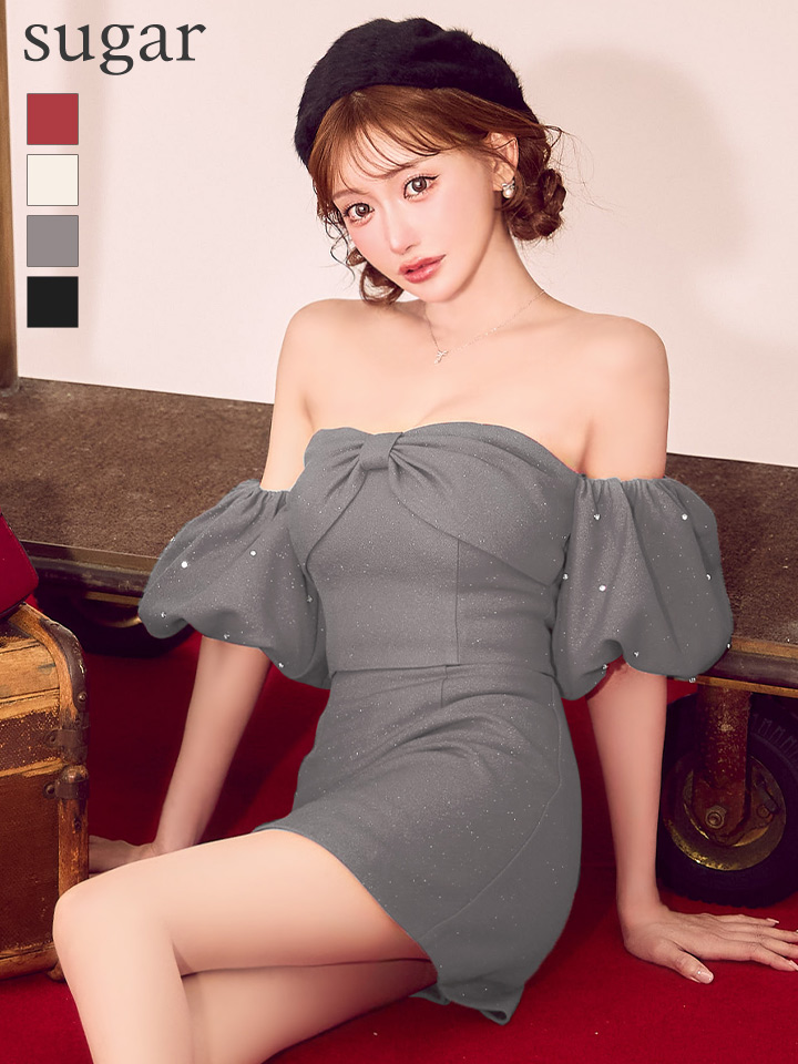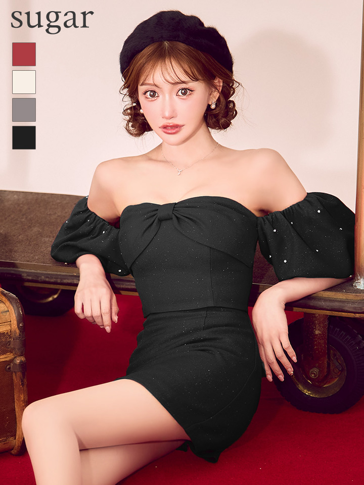 【予約商品/10月上旬発送予定】XSサイズあり【ROBE de FLEURS/ローブドフルール】オフショルダー/ ビックリボン/ セットアップ/ タイト/ ミニドレス/ キャバドレス[OF08] [FM4700-B-S251001]
