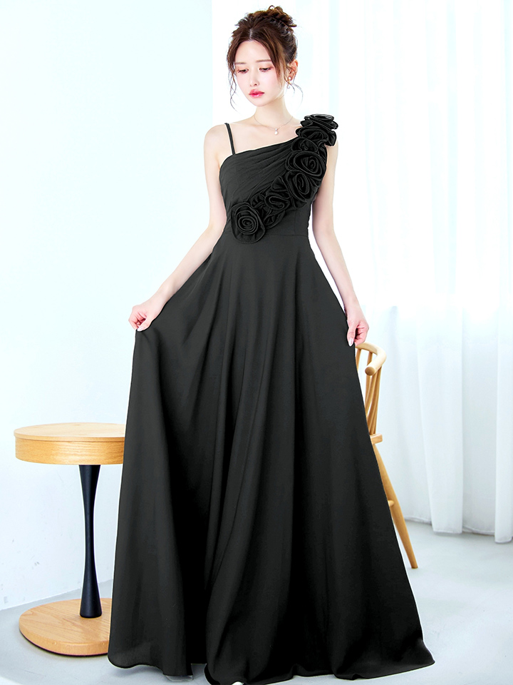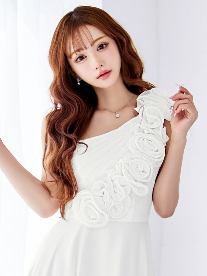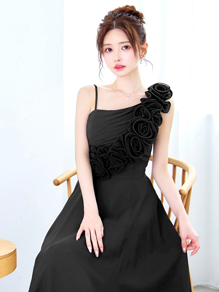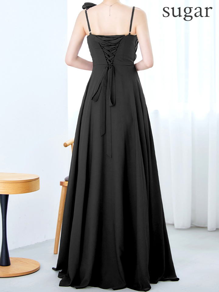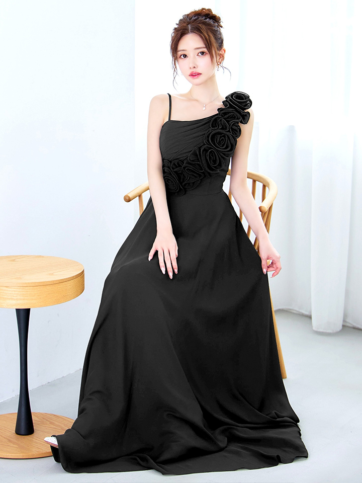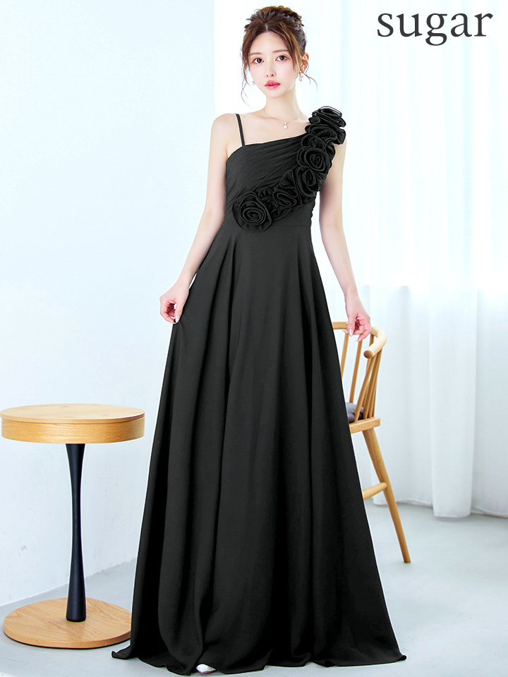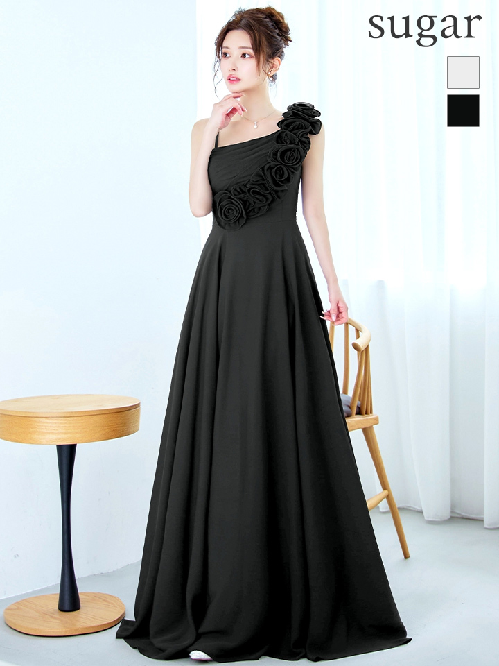 お顔周りを華やかに魅せる立体フラワーが印象的なフレアロングドレス♡