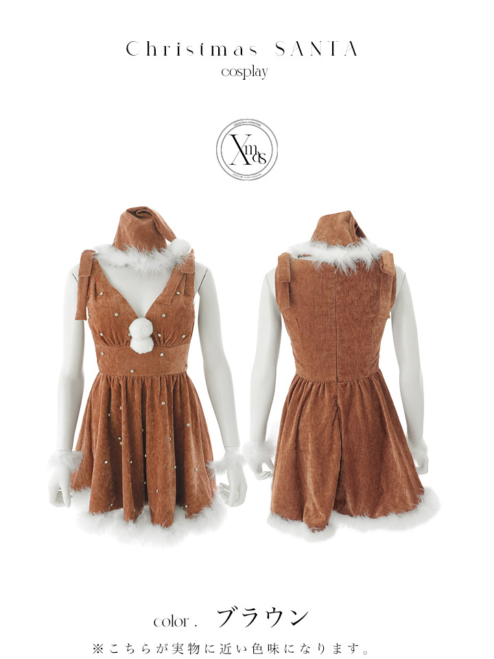 【即日発送】【サンタ】ショルダーリボンビジューツイードフレアサンタコスプレ【コスプレ4点セット】【XS-XLサイズ/1カラー】[OF01] [SS-202-SB-dzw-BR-25MY]