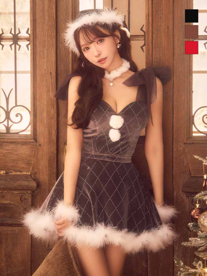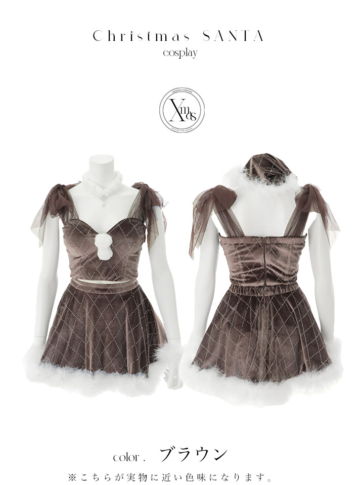 【即日発送】【送料無料!】【サンタ】チュールリボンアーガイル風サンタコスプレ【コスプレ6点セット】【XS-XLサイズ/3カラー】[OF03] [SS-182-YN-dzw-B-25MY]