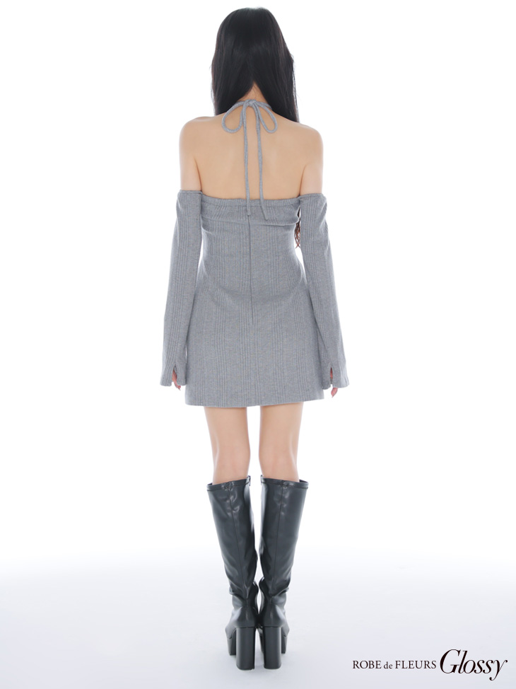 【予約商品/11月上旬発送予定】XSサイズあり【Glossy/グロッシー】ラメリブニット/ カッティング/ オフショル/ タイト/ ミニドレス/ キャバドレス[OF08] [GL3959-LATTE-2510]