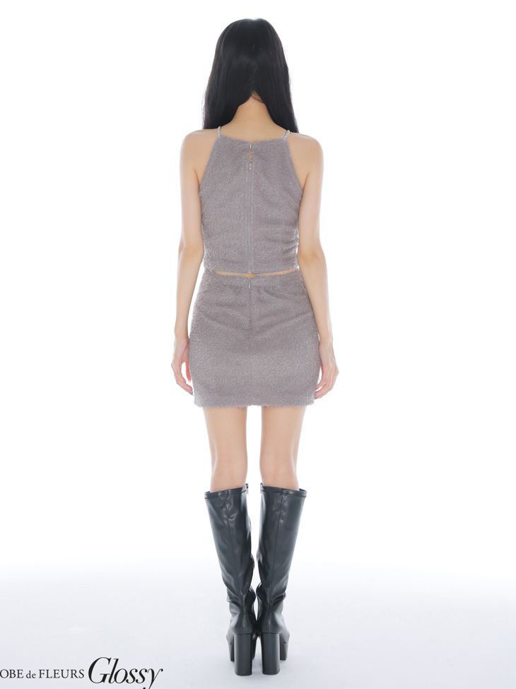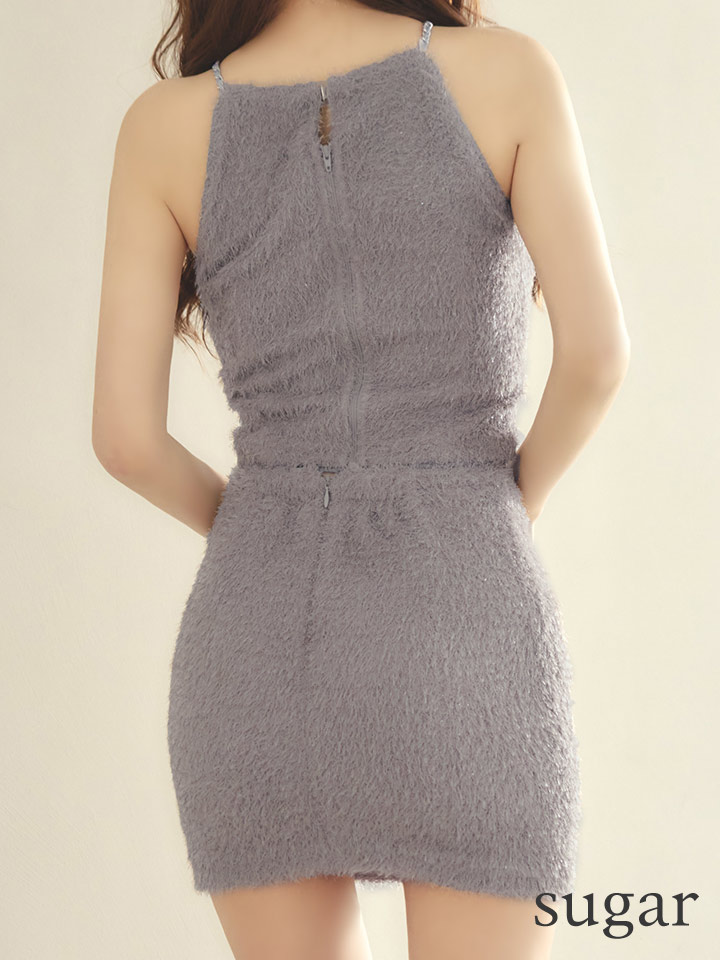 XSサイズあり【Glossy/グロッシー】ふわふわ起毛/ ホルターネック/ セットアップ/ タイト/ ミニドレス/ キャバドレス[OF08] [GL3954-B-S251004]
