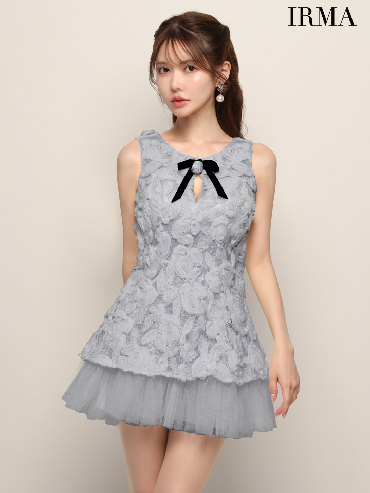 立体フラワーレースにリボンブローチがクラシカルガーリーな雰囲気のフレアミニドレス♡