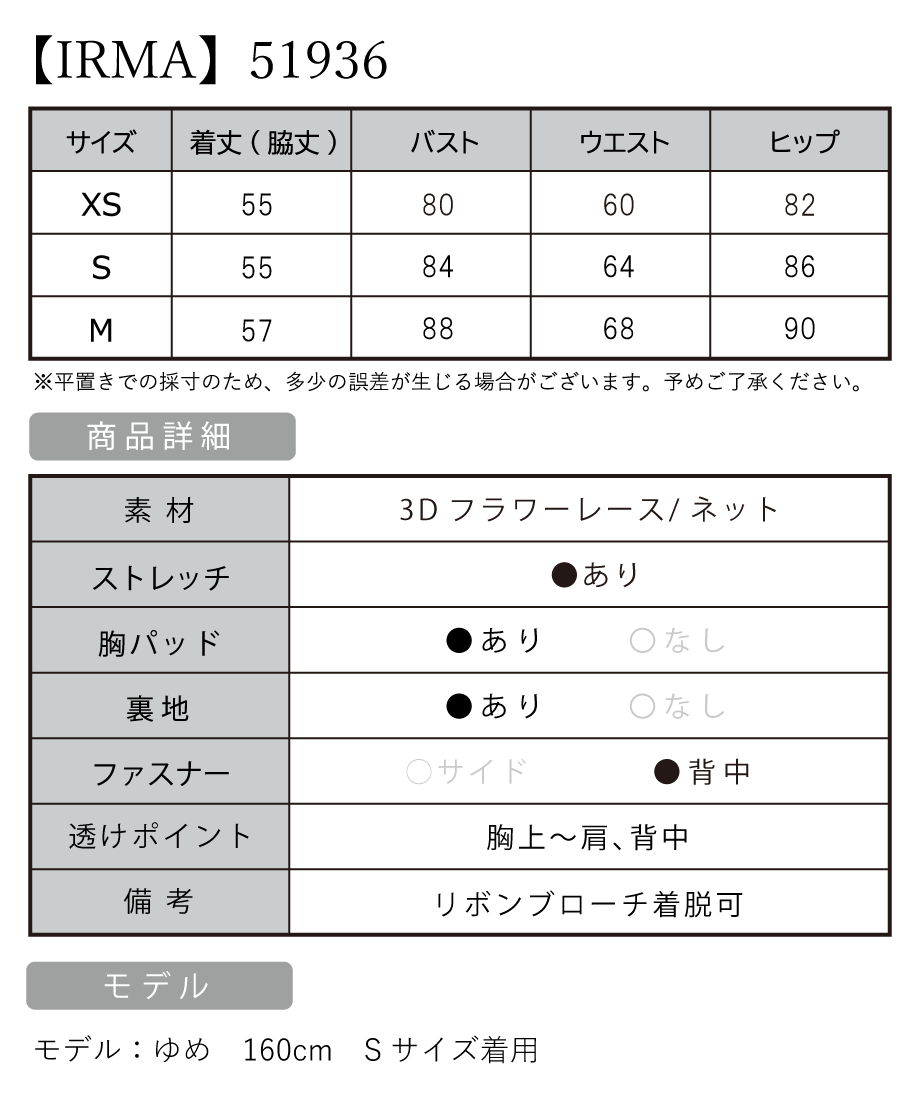 ゆめ/身長160cm/Sサイズ着用ご注意