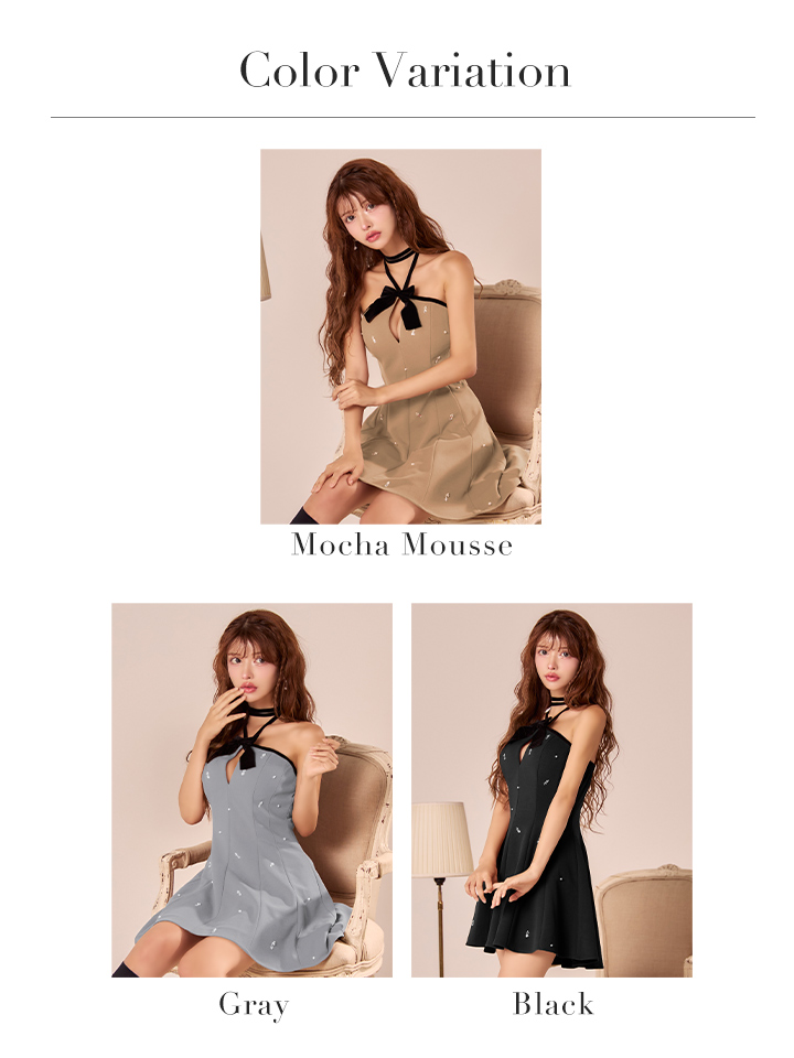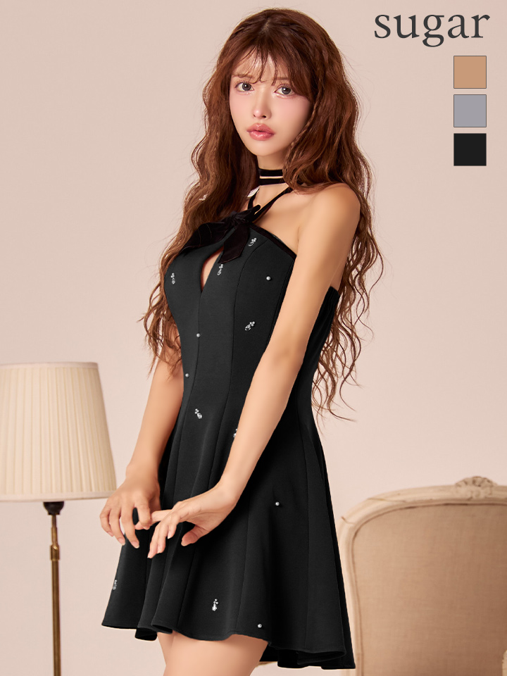 【予約商品/10月下旬発送予定】XSサイズあり【IRMA/イルマ】ホルターネック/ ベロアリボン/ レース/ バストスリット/ ストレッチ/ フレア/ ミニドレス/ キャバドレス[OF2A] [51956-IR-MoMous-S251006]