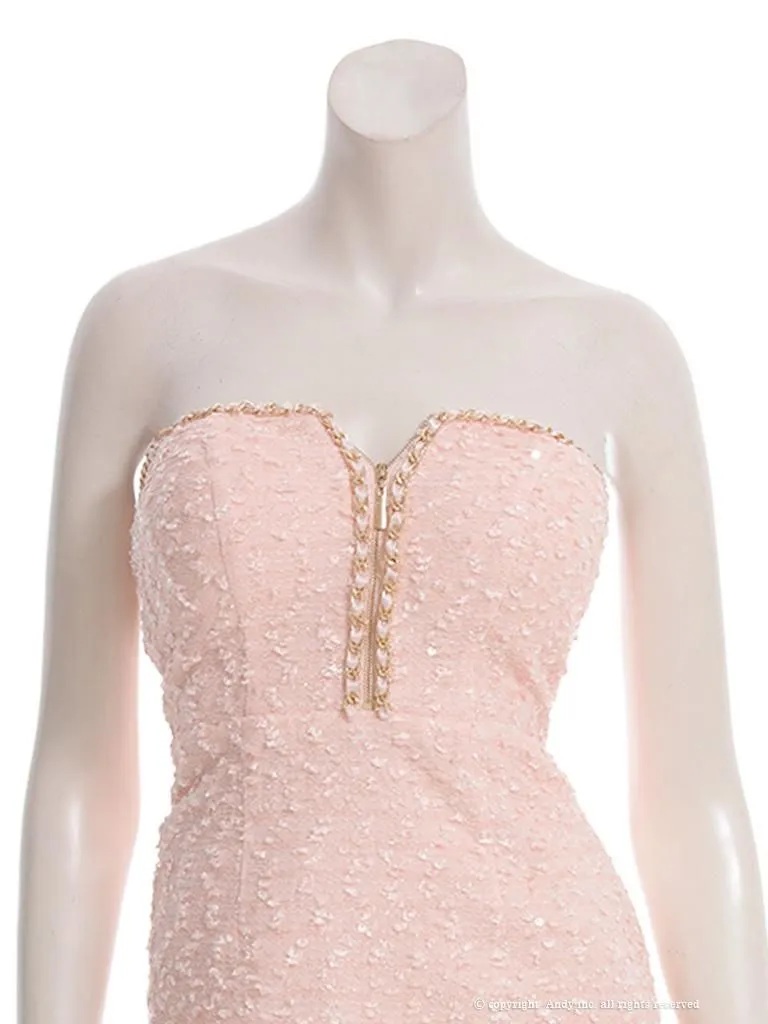 XSサイズあり【an /アン】チェーンパイピング/ ベア/ フロントジップ/ タイト/ ミニドレス/ キャバドレス[OF05] [AOC4000-MI-2510]