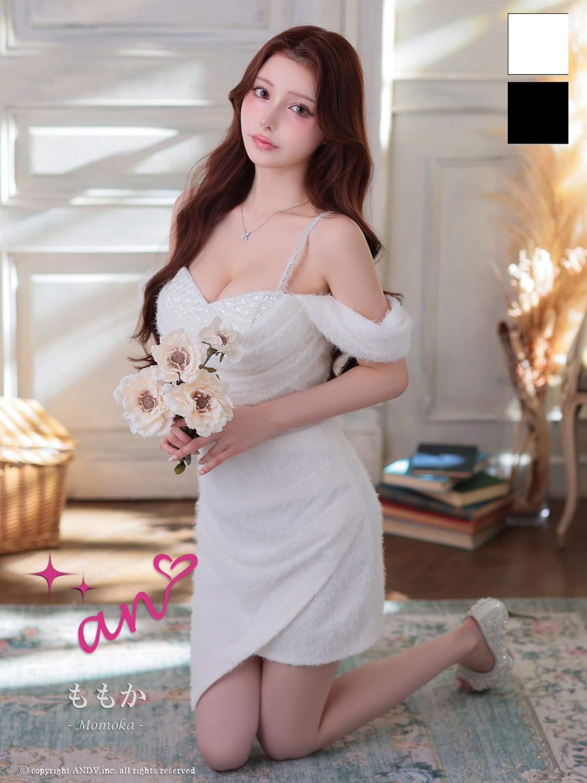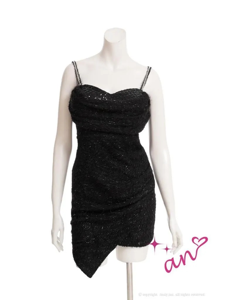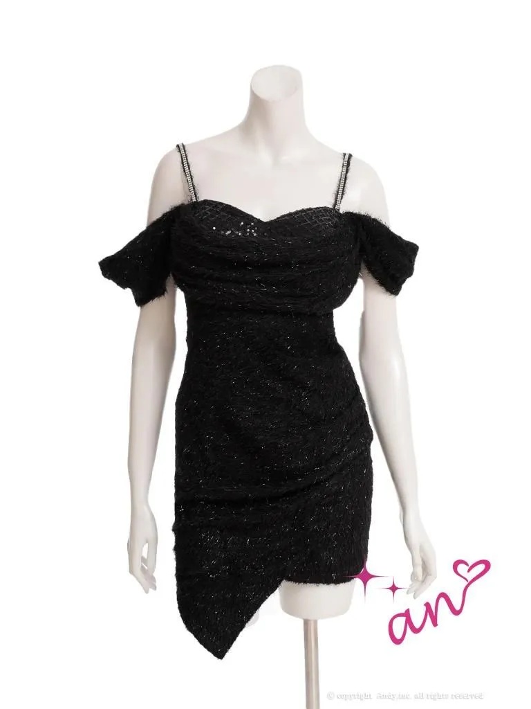 XSサイズあり【an/アン】シャギー/ オフショル/ 2way/ スパンコール/ ラインストーン/ キャミ/ アシンメトリー/ タイト/ ミニドレス/ キャバドレス[OF05] [AOC3988-W-2510]