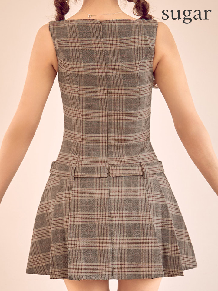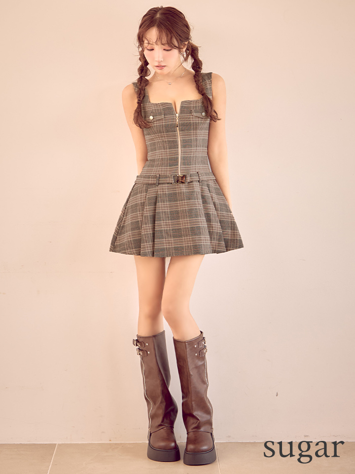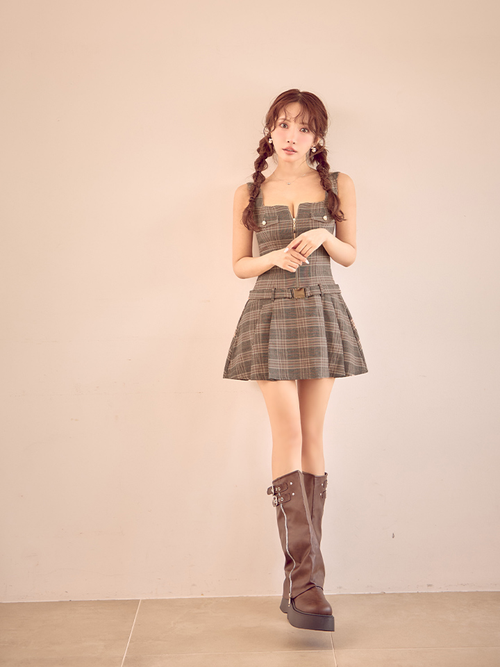 XSサイズあり【DEA./ディア】Vカット/ ジップ/ チェック柄/ フレア/ ミニドレス/ キャバドレス[OF08] [DE4618-BR-S251008]