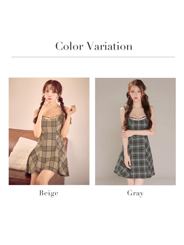 XSサイズあり【DEA./ディア】ふんわり起毛/ チェック/ キャミソール/ フレア/ ミニドレス/ キャバドレス[OF08] [DE4608-BE-S251008]
