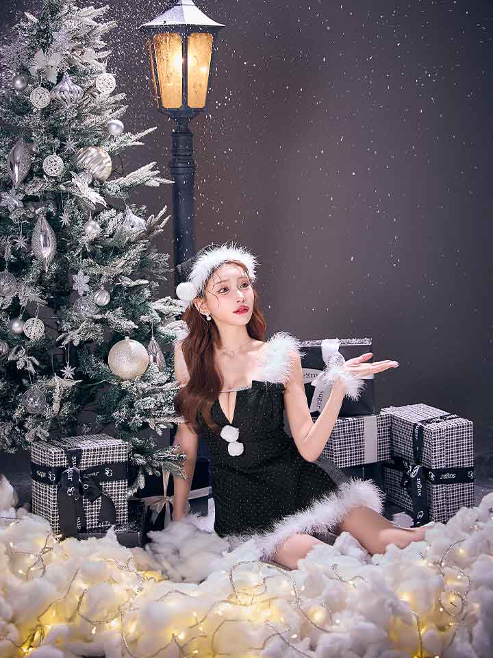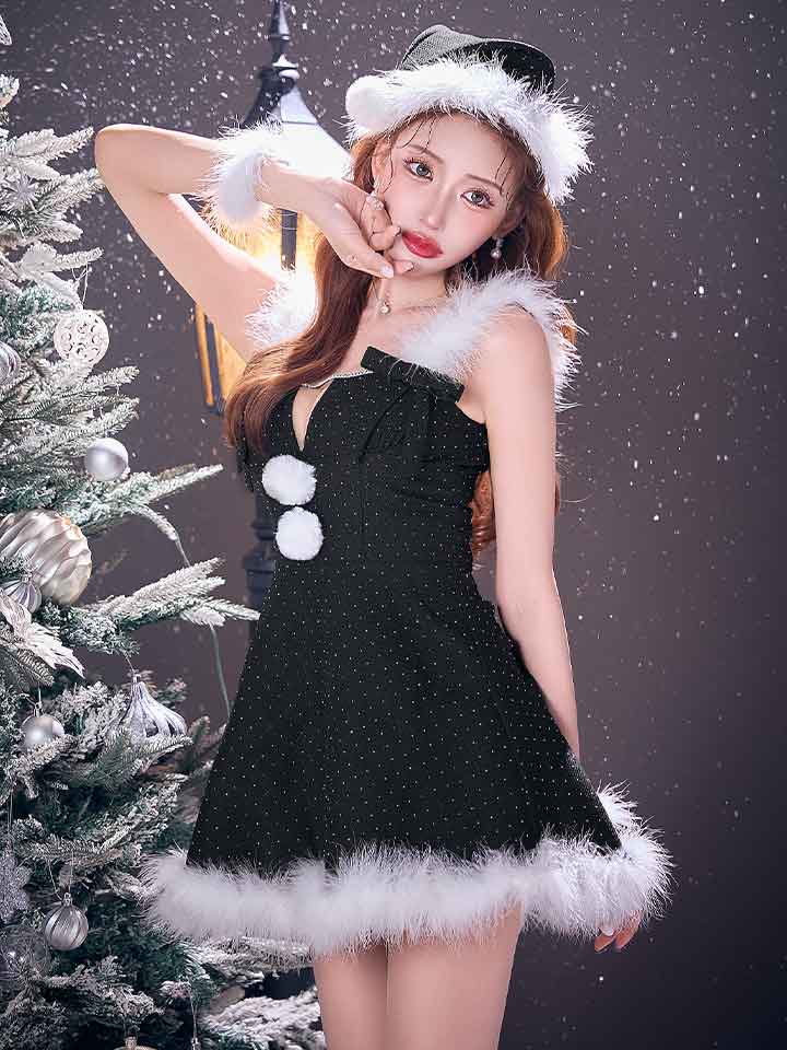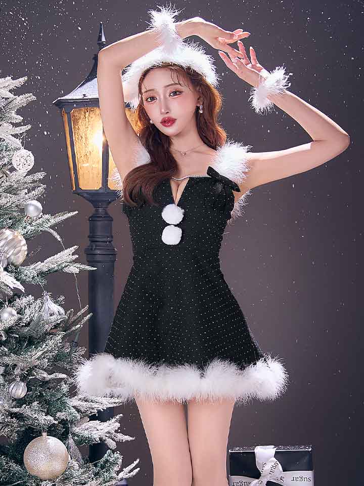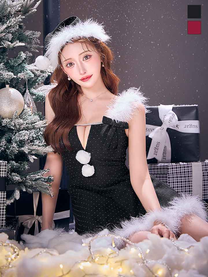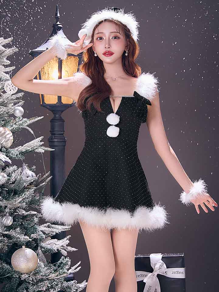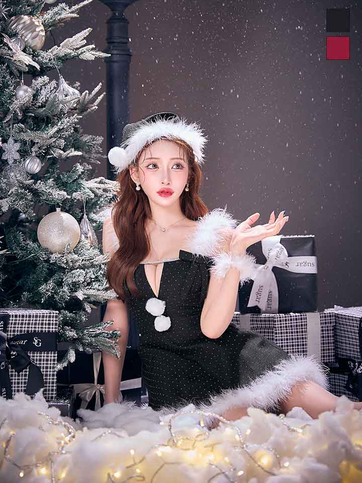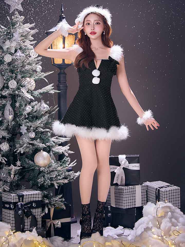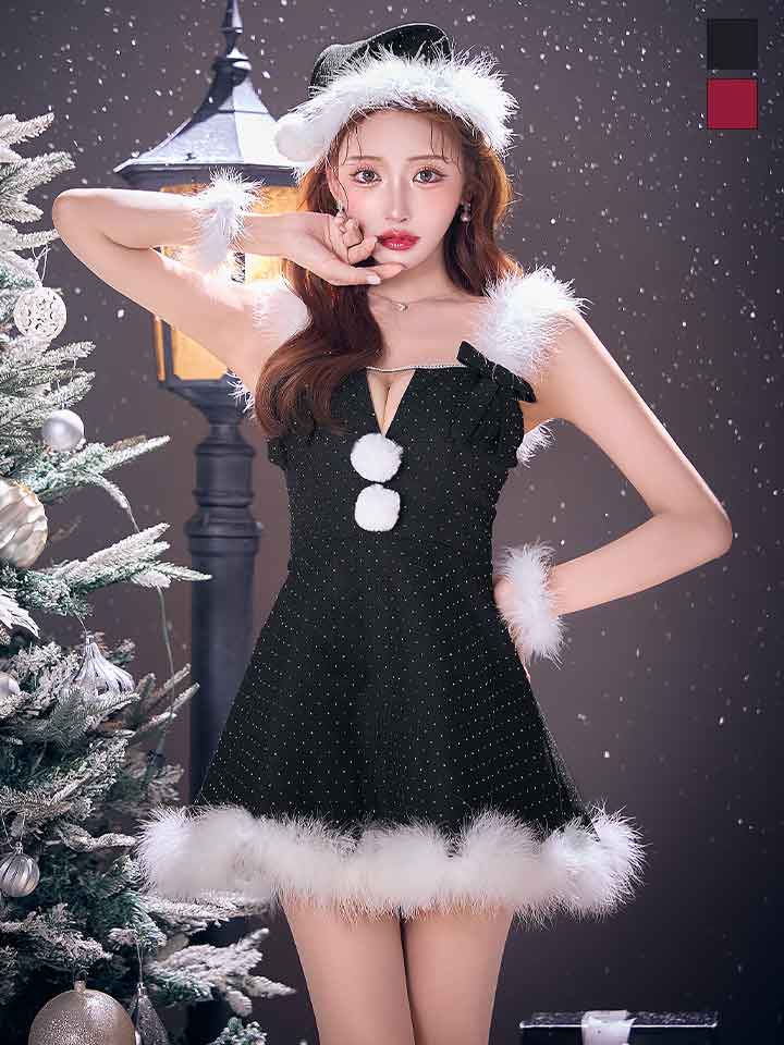 【即日発送】【サンタ】リボンファーサンタコスプレ【コスプレ4点セット】【XS-XLサイズ/2カラー】[HC03] [SS-162-YN-dzw-B-25MY]