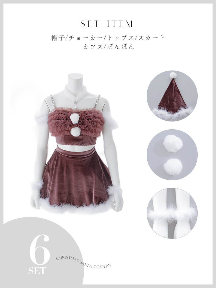 【ノベルティ対象】【即日発送】【送料無料!】【サンタ】チュールフリルオフショルセットアップサンタコスプレ【コスプレ6点セット】【XS-Lサイズ/2カラー】[OF03] [SS-183-YN-dzw-BR-25MY-2]