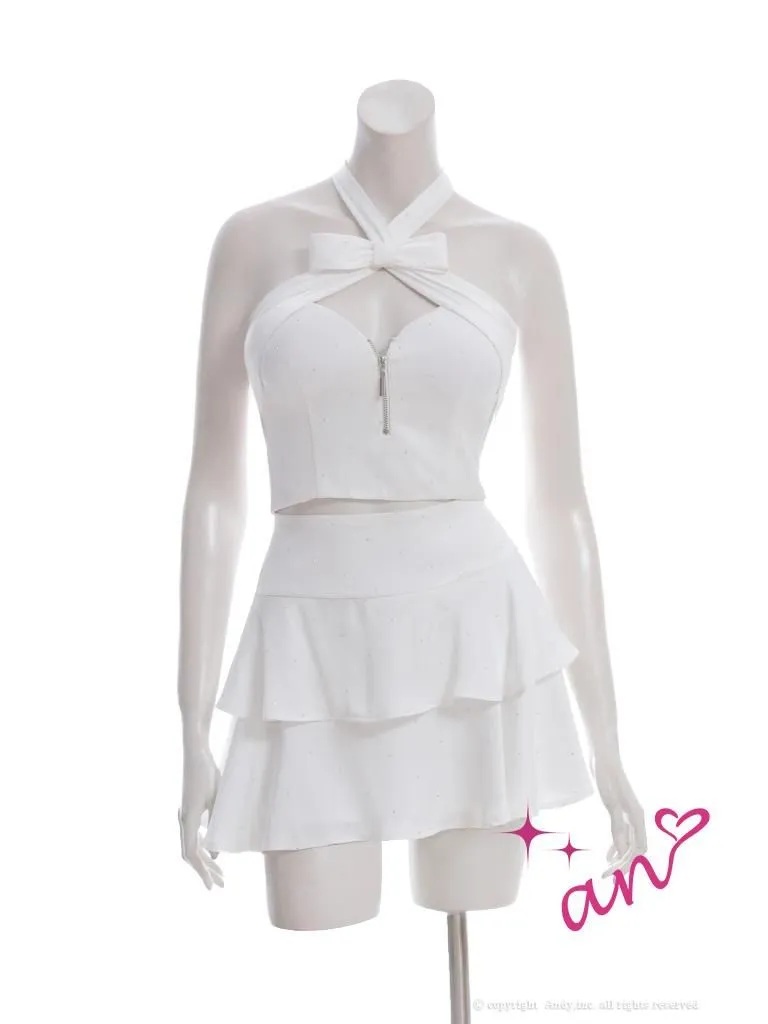 XSサイズあり【an /アン】ホルターネック/ リボン/ バストジップ/ ラインストーン/ 谷間魅せ/ セットアップ/ フレア/ ミニドレス/ キャバドレス[OF05] [AOC3996-W-2510]